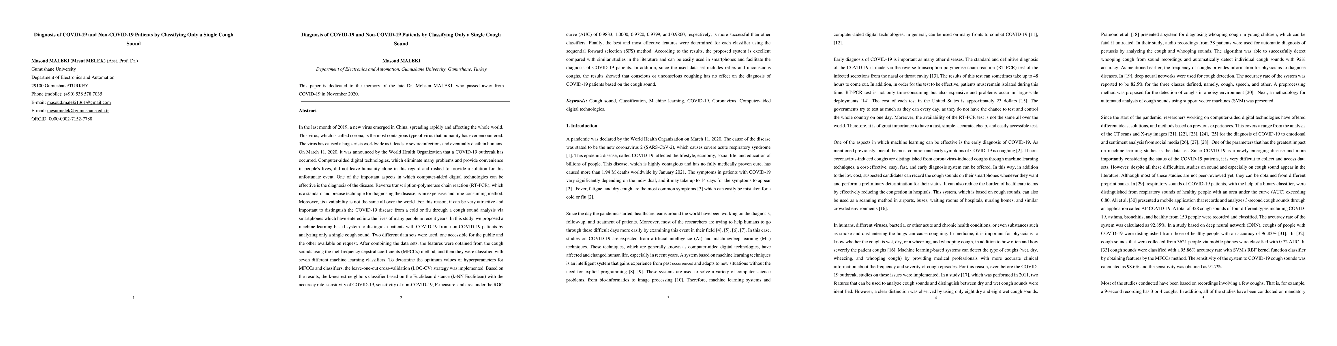 A machine learning system can accurately diagnose COVID-19 patients from a single cough sound, with high accuracy rates and effectiveness compared to similar studies.