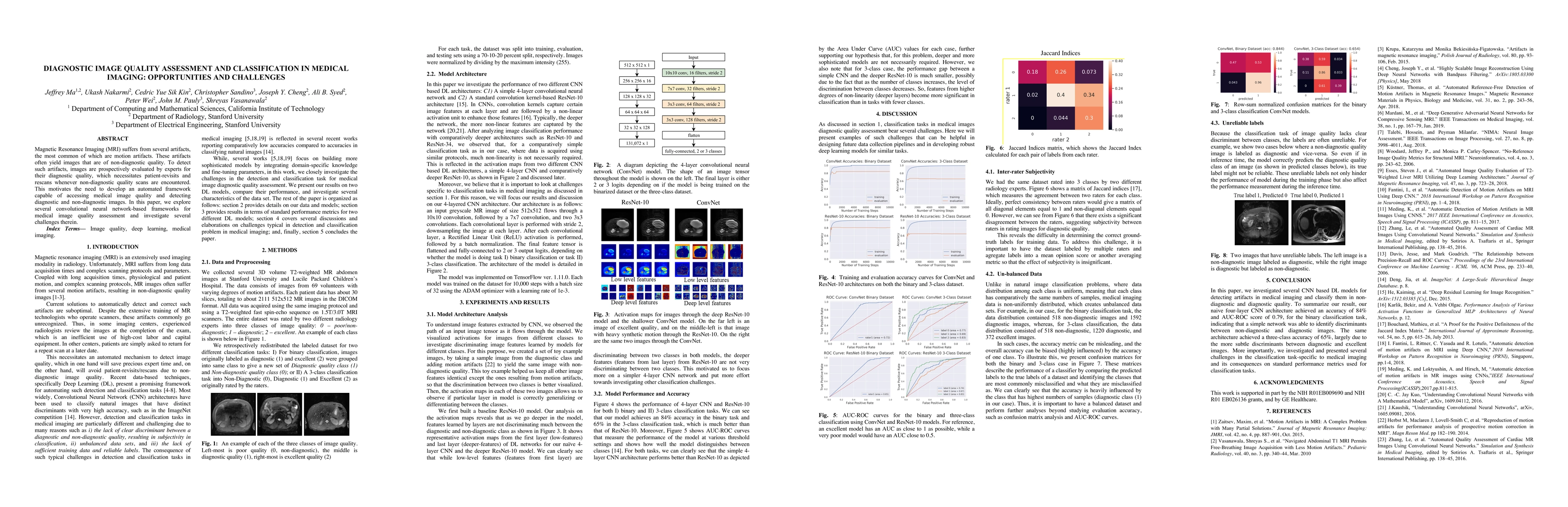 Magnetic Resonance Imaging (MRI) suffers from several artifacts, the most common of which are motion artifacts. These artifacts often yield images that are of non-diagnostic quality. To detect such artifacts, images are prospectively evaluated by experts for their diagnostic quality, which necessitates patient-revisits and rescans whenever non-diagnostic quality scans are encountered. This motivates the need to develop an automated framework capable of accessing medical image quality and detecting diagnostic and non-diagnostic images. In this paper, we explore several convolutional neural network-based frameworks for medical image quality assessment and investigate several challenges therein.