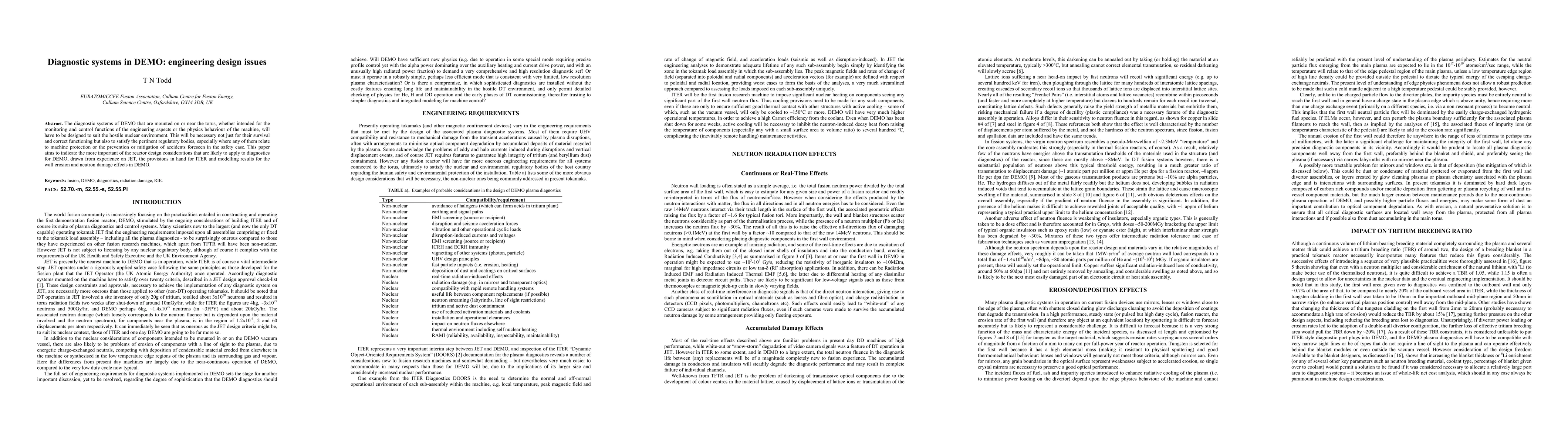The diagnostic systems of DEMO that are mounted on or near the torus, whether intended for the monitoring and control functions of the engineering aspects or the physics behaviour of the machine, will have to be designed to suit the hostile nuclear environment. This will be necessary not just for their survival and correct functioning but also to satisfy the pertinent regulatory bodies, especially where any of them relate to machine protection or the prevention or mitigation of accidents foreseen in the safety case. This paper aims to indicate the more important of the reactor design considerations that are likely to apply to diagnostics for DEMO, drawn from experience on JET, the provisions in hand for ITER and modelling results for the wall erosion and neutron damage effects in DEMO.