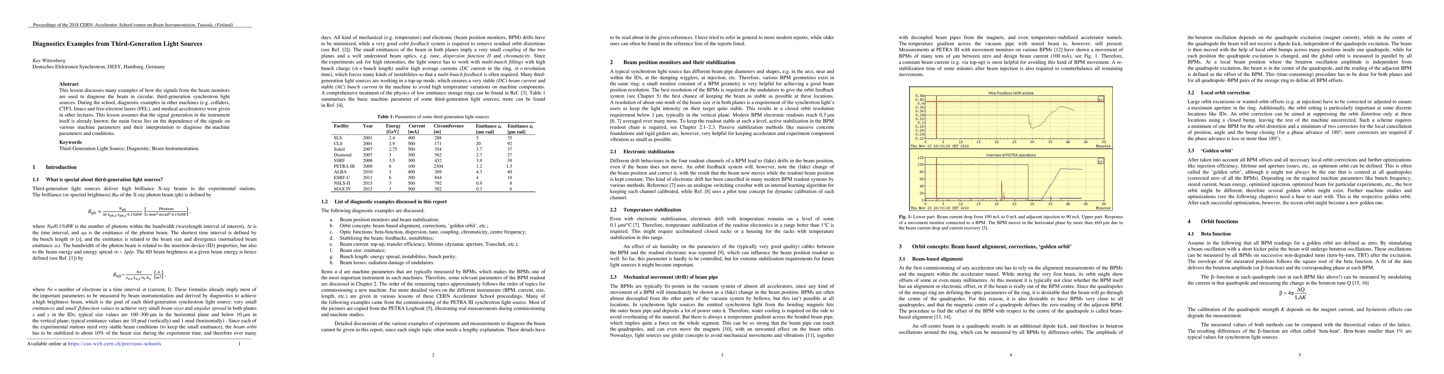 Researchers analyze how beam signals from third-generation synchrotron light sources are used to diagnose machine parameters. They focus on interpreting the signals to understand their dependence on machine conditions.