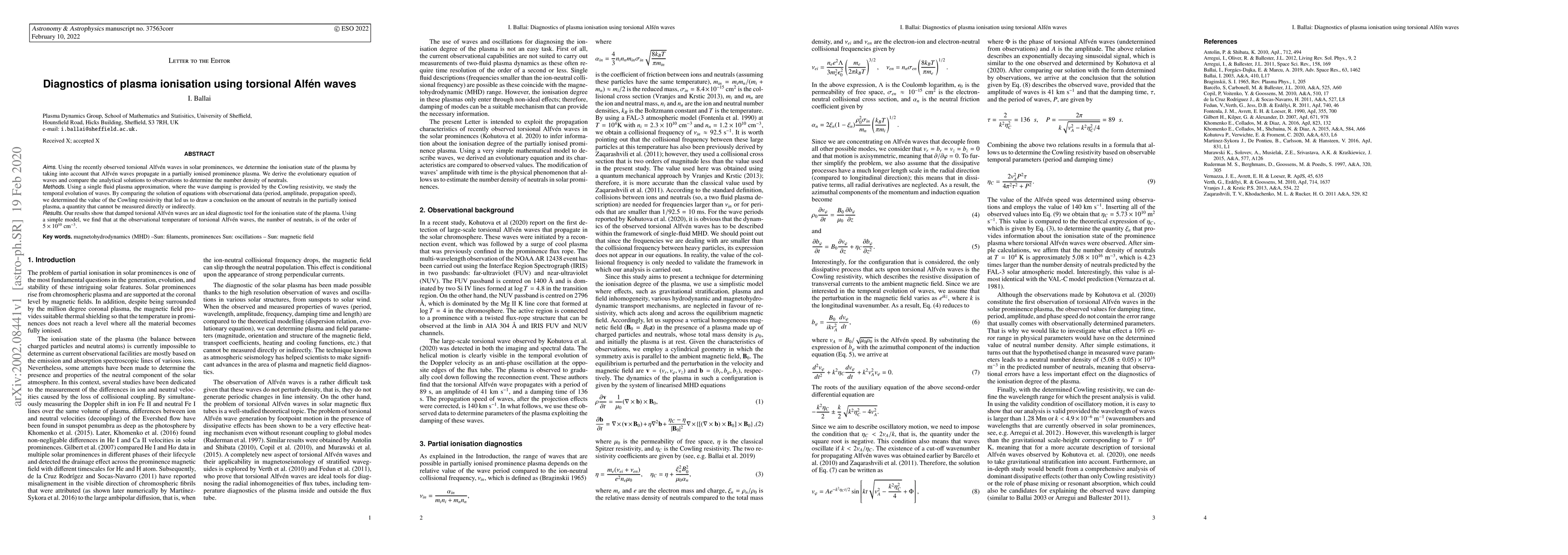 This research utilizes torsional Alfvén waves in solar prominences to diagnose plasma ionization levels by analyzing wave damping and propagation characteristics. It determines the number density of neutral particles in partially ionized plasma, concluding that such waves are an effective diagnostic tool for plasma ionization state, estimating neutrals at $5\times 10^{10}$ cm$^{-3}$.