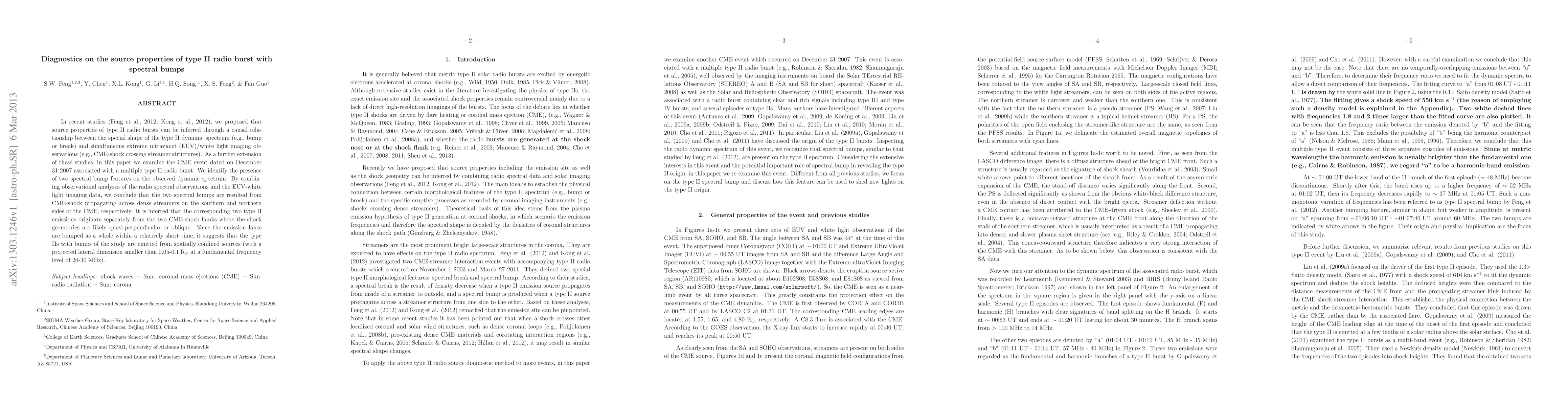 This paper investigates the source properties of type II radio bursts with spectral bumps, linking them to CME-shock interactions with dense streamers. The analysis of a December 31, 2007 CME event reveals two spectral bumps, suggesting separate quasi-perpendicular or oblique shock emissions from the CME's flanks, indicating spatially confined emission sources.