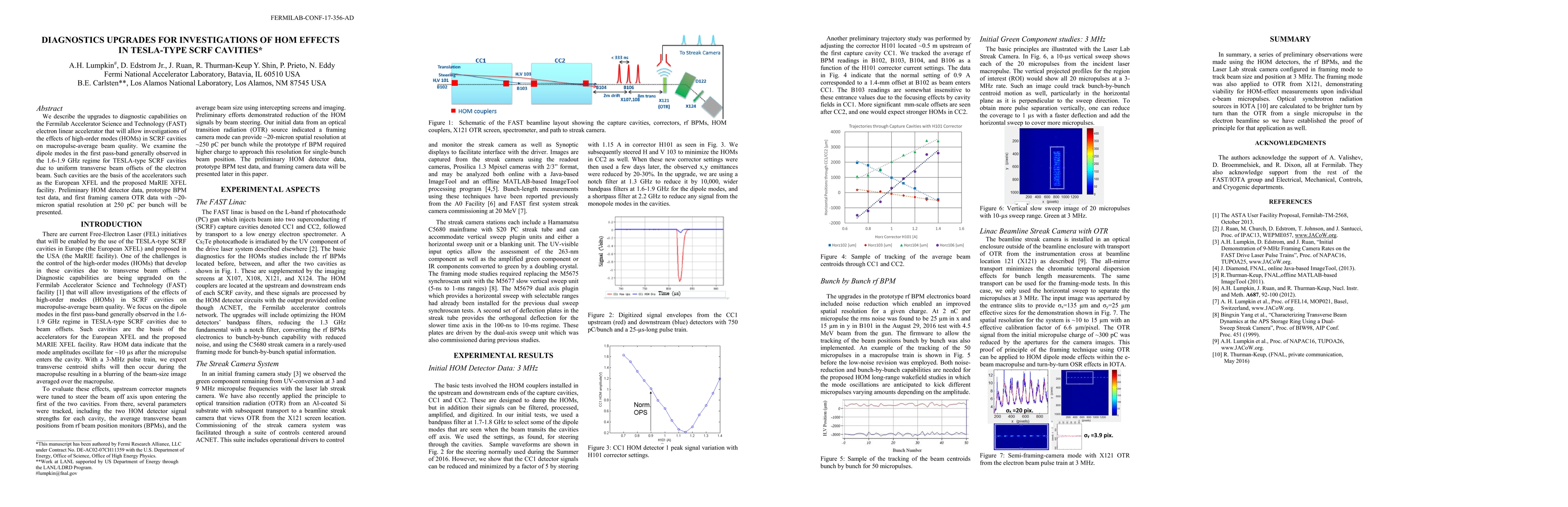 We describe the upgrades to diagnostic capabilities on the Fermilab Accelerator Science and Technology (FAST) electron linear accelerator that will allow investigations of the effects of high-order modes (HOMs) in SCRF cavities on macropulse-average beam quality. We examine the dipole modes in the first pass-band generally observed in the 1.6-1.9 GHz regime for TESLA-type SCRF cavities due to uniform transverse beam offsets of the electron beam. Such cavities are the basis of the accelerators such as the European XFEL and the proposed MaRIE XFEL facility. Preliminary HOM detector data, prototype BPM test data, and first framing camera OTR data with ~20 micron spatial resolution at 250 pC per bunch will be presented.