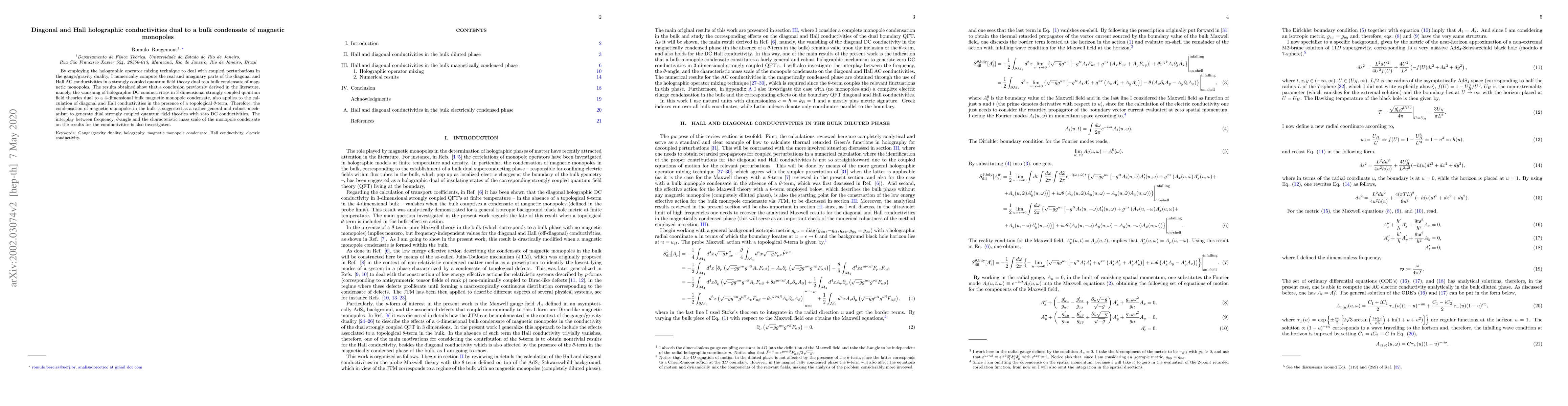 By employing the holographic operator mixing technique to deal with coupled perturbations in the gauge/gravity duality, I numerically compute the real and imaginary parts of the diagonal and Hall AC conductivities in a strongly coupled quantum field theory dual to a bulk condensate of magnetic monopoles. The results obtained show that a conclusion previously derived in the literature, namely, the vanishing of holographic DC conductivities in 3-dimensional strongly coupled quantum field theories dual to a 4-dimensional bulk magnetic monopole condensate, also applies to the calculation of diagonal and Hall conductivities in the presence of a topological $\theta$-term. Therefore, the condensation of magnetic monopoles in the bulk is suggested as a rather general and robust mechanism to generate dual strongly coupled quantum field theories with zero DC conductivities. The interplay between frequency, $\theta$-angle and the characteristic mass scale of the monopole condensate on the results for the conductivities is also investigated.