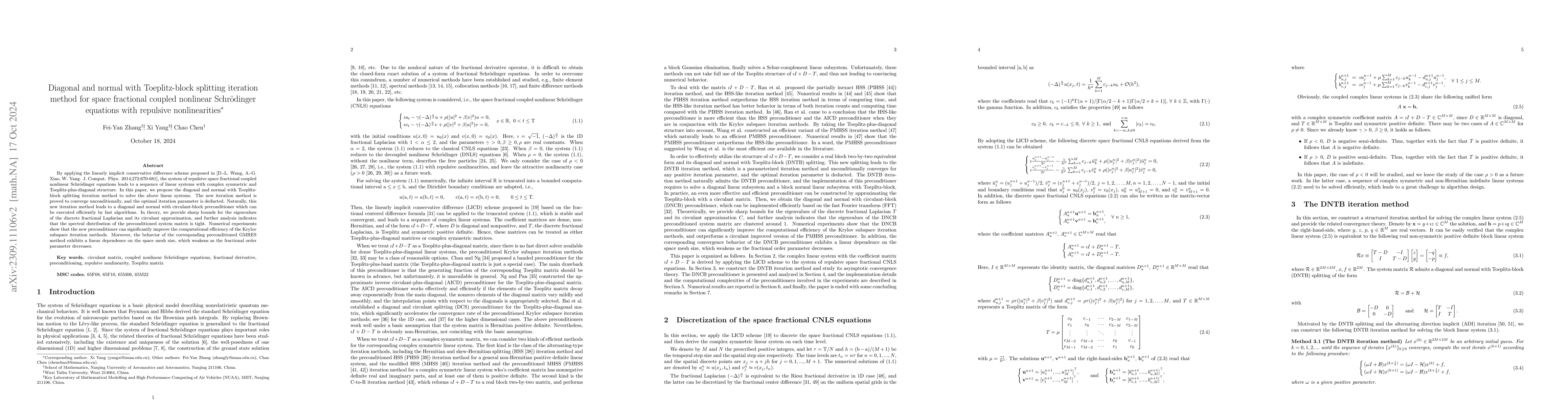 This paper proposes a diagonal and normal with Toeplitz-block splitting iteration method to solve linear systems arising from space fractional coupled nonlinear Schrödinger equations with repulsive nonlinearities. The method is proven to converge unconditionally, and the optimal iteration parameter is derived, demonstrating efficient computational performance and improved convergence behaviors.