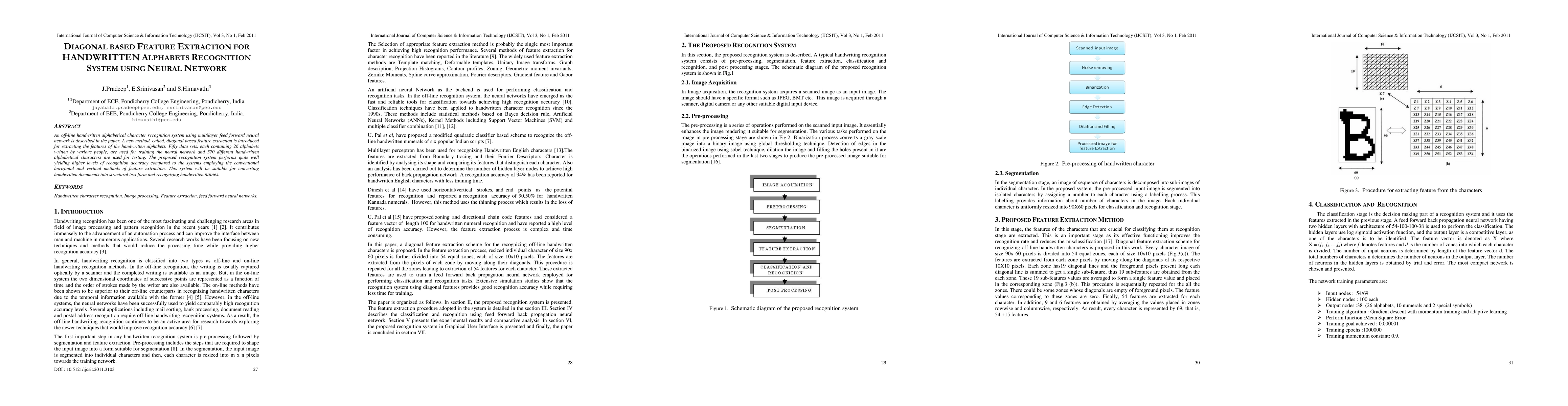 This paper introduces a neural network-based system for recognizing offline handwritten alphabets using a novel diagonal-based feature extraction method. The system achieves higher recognition accuracy compared to traditional horizontal and vertical methods, making it effective for converting handwritten documents into structured text.