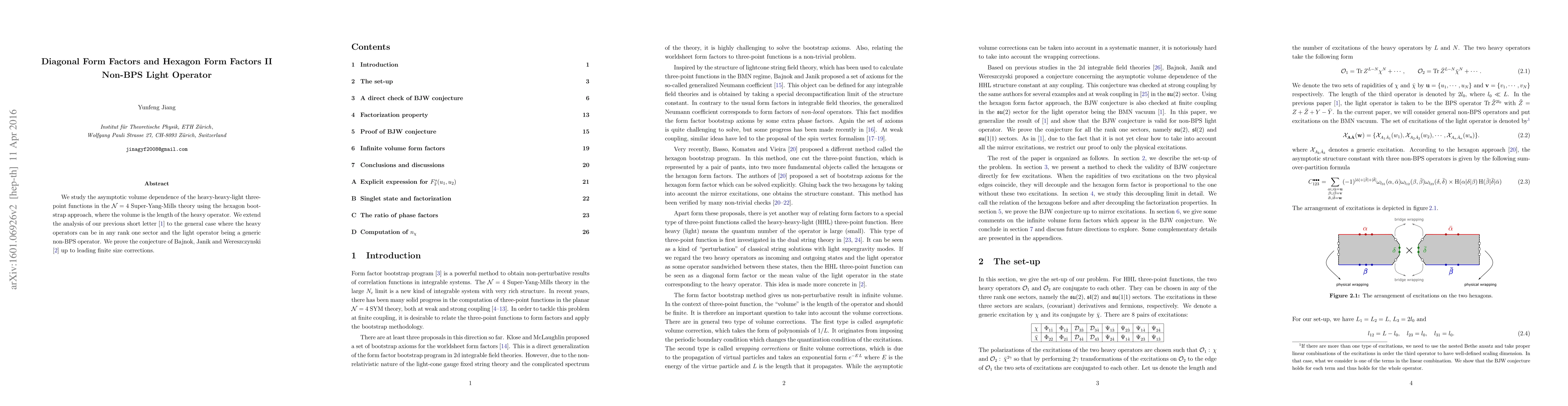 We study the asymptotic volume dependence of the heavy-heavy-light three-point functions in the $\mathcal{N}=4$ Super-Yang-Mills theory using the hexagon bootstrap approach, where the volume is the length of the heavy operator. We extend the analysis of our previous short letter 1511.06199 to the general case where the heavy operators can be in any rank one sector and the light operator being a generic non-BPS operator. We prove the conjecture of Bajnok, Janik and Wereszczynski 1404.4556 up to leading finite size corrections.