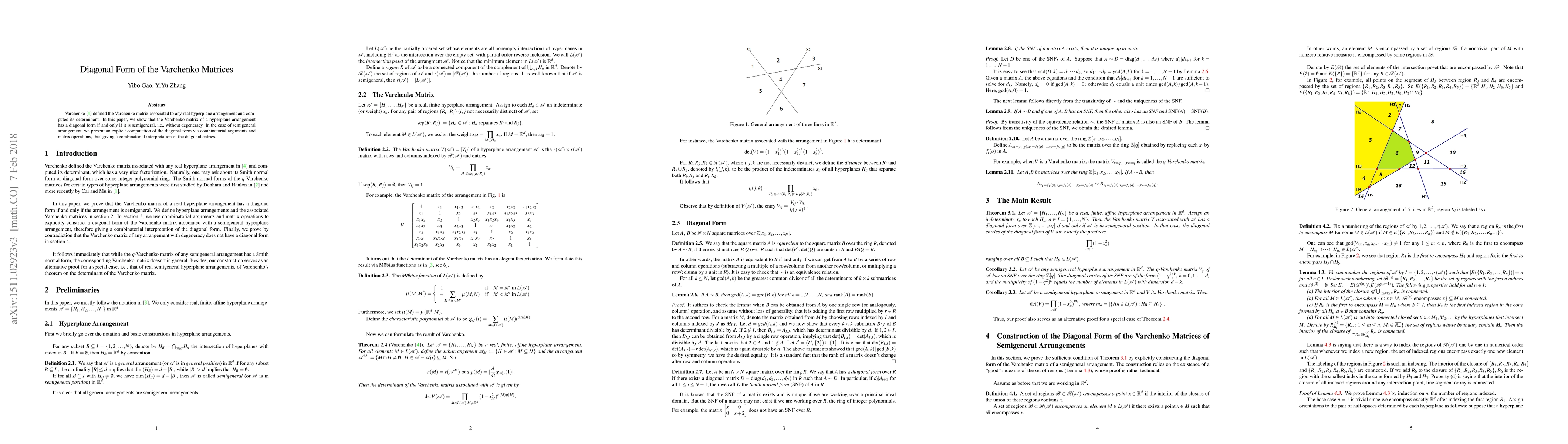 This paper demonstrates that the Varchenko matrix for a hyperplane arrangement is diagonal if and only if the arrangement is semigeneral, devoid of degeneracy. For semigeneral arrangements, it provides an explicit diagonal form computation using combinatorial methods and matrix operations.