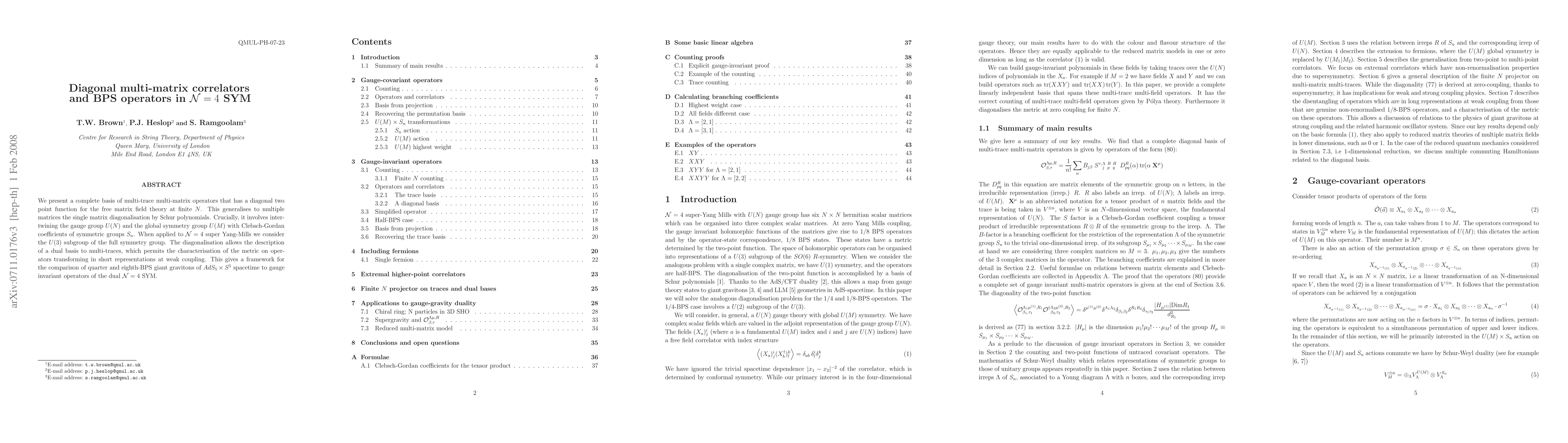 This paper develops a complete basis of multi-trace multi-matrix operators with diagonal two-point functions in free matrix field theory, generalizing single matrix diagonalization. It applies this to N=4 super Yang-Mills, characterizing the metric on operators in short representations and comparing BPS giants in AdS_5 x S^5 to gauge-invariant operators.