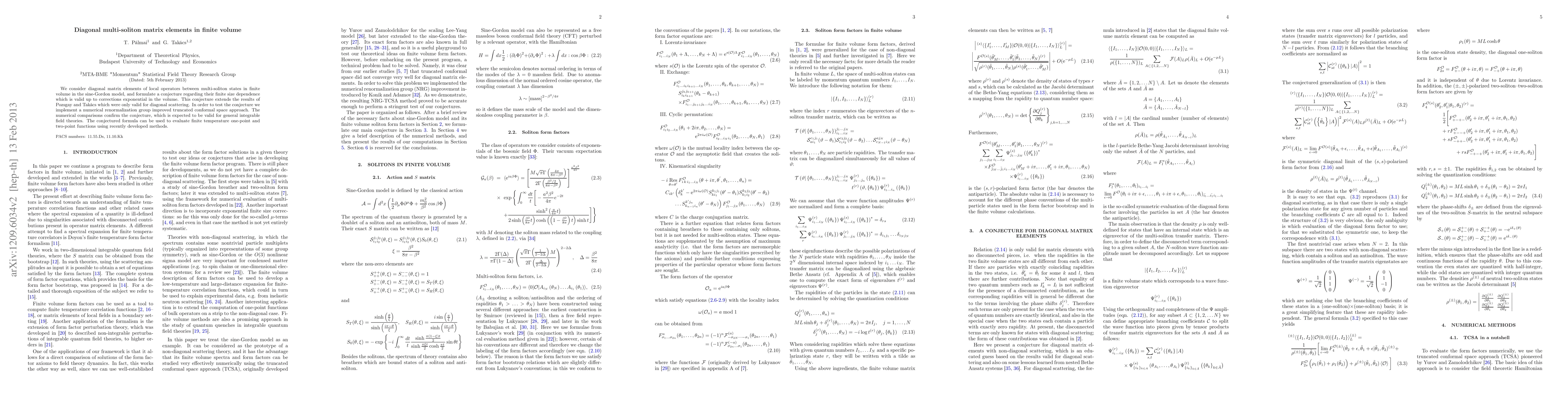 This paper proposes a conjecture for the finite volume dependence of diagonal multi-soliton matrix elements in the sine-Gordon model, extending previous results. Numerical tests confirm the conjecture using a refined conformal approach, suggesting its applicability to general integrable field theories.