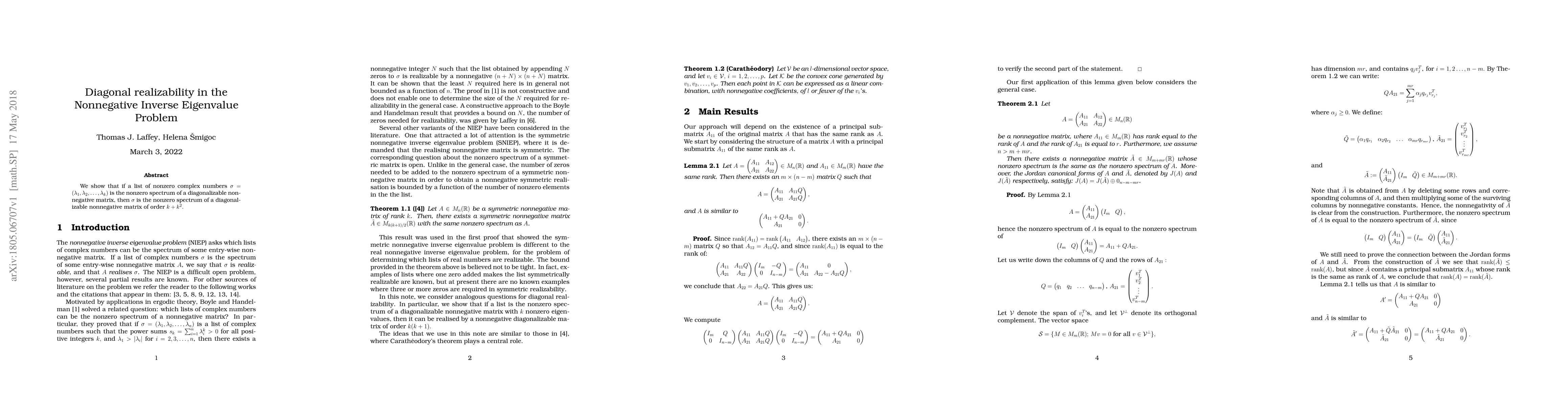 Summary: The paper demonstrates that any nonzero spectrum $\sigma$ of a diagonalizable nonnegative matrix can also be realized as the spectrum of a diagonalizable nonnegative matrix of order $k+k^2$, where $k$ is the number of elements in $\sigma$. This addresses the nonnegative inverse eigenvalue problem.