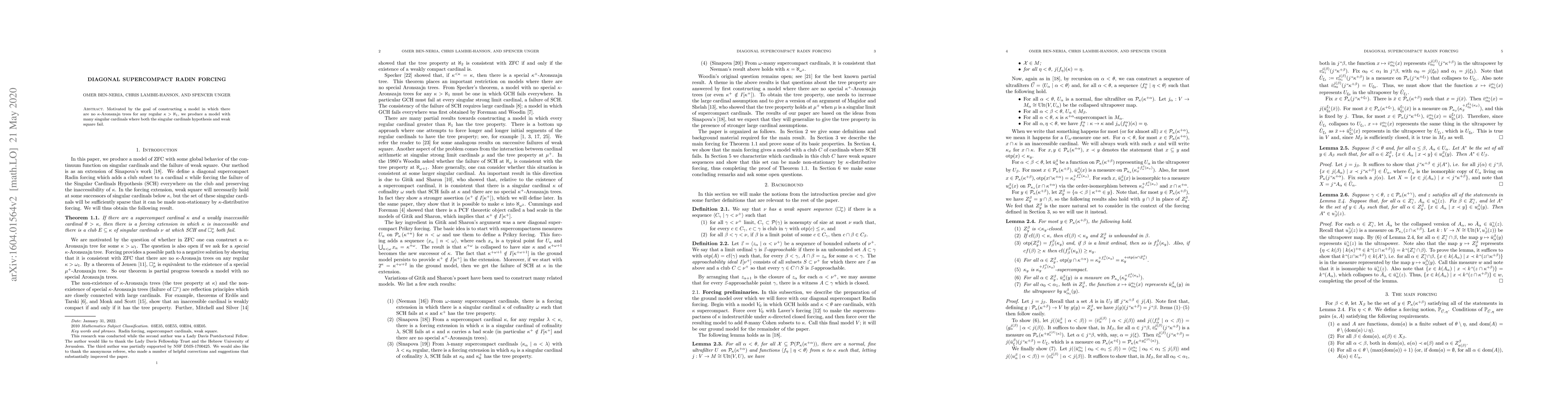 Motivated by the goal of constructing a model in which there are no $\kappa$-Aronszajn trees for any regular $\kappa>\aleph_1$, we produce a model with many singular cardinals where both the singular cardinals hypothesis and weak square fail.