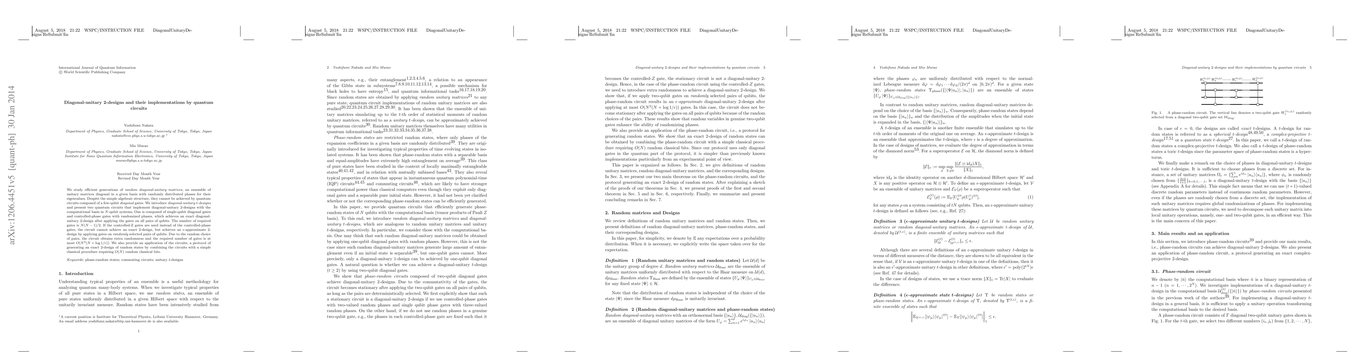 This paper investigates the generation of diagonal-unitary $t$-designs using quantum circuits and introduces two circuits for diagonal-unitary $2$-designs in $N$-qubit systems. The first circuit uses single-qubit diagonal gates and controlled-phase gates for an exact design, requiring $N(N-1)/2$ gates. The second circuit, using controlled-Z gates, achieves an approximate design with reduced gate count of $O(N^2(N+\log1/\epsilon))$, leveraging random pair selection.