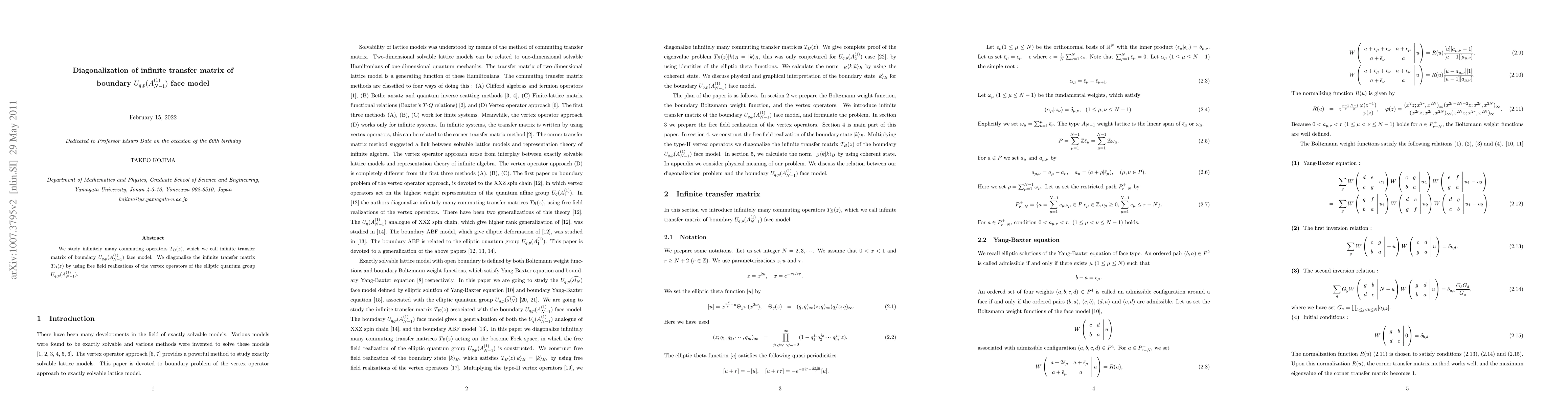Researchers developed a method to diagonalize an infinite transfer matrix for a specific quantum group model, using free field realizations of vertex operators. This breakthrough has implications for understanding the properties of the model.