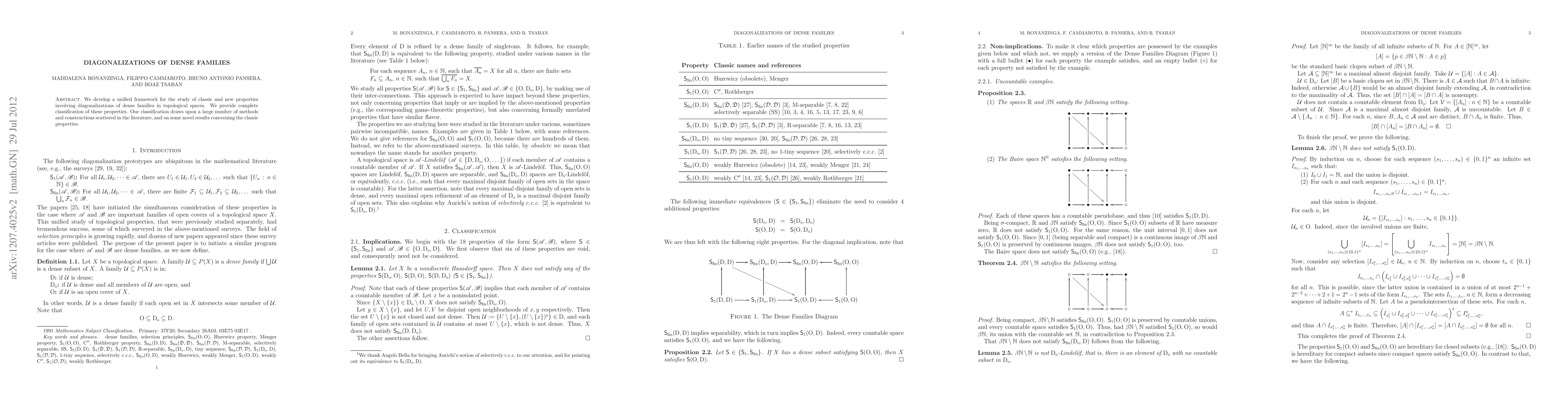 Researchers develop a unified framework for studying properties of diagonalizations in dense families, providing a complete classification of these properties.