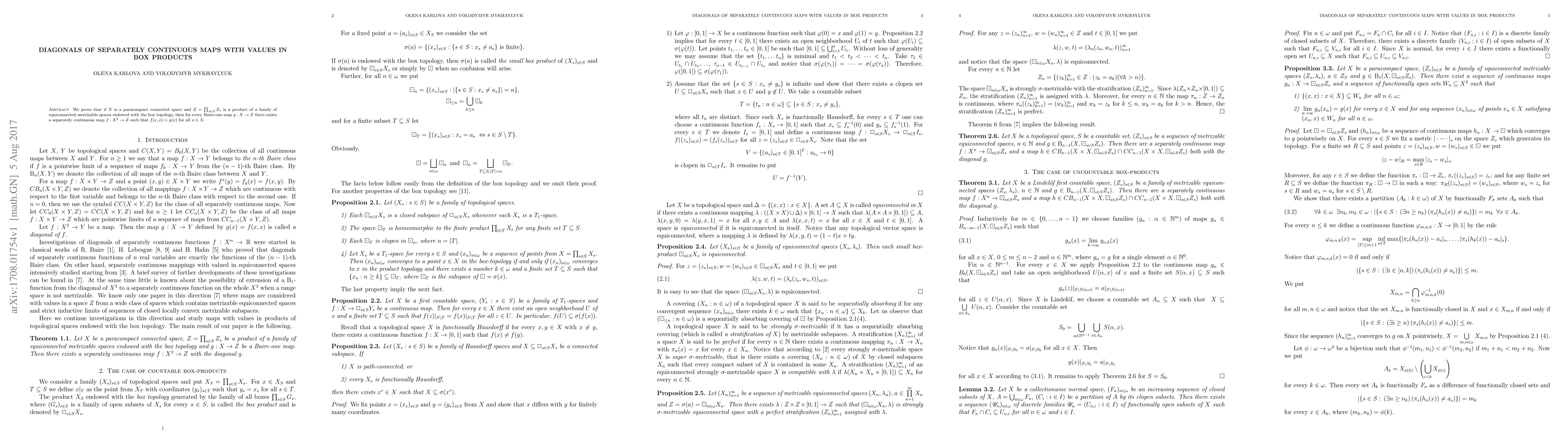 Researchers prove that for a connected space X with a specific box product topology and a Baire-one map to this space, there exists a separately continuous map from the square of X to the box product space.