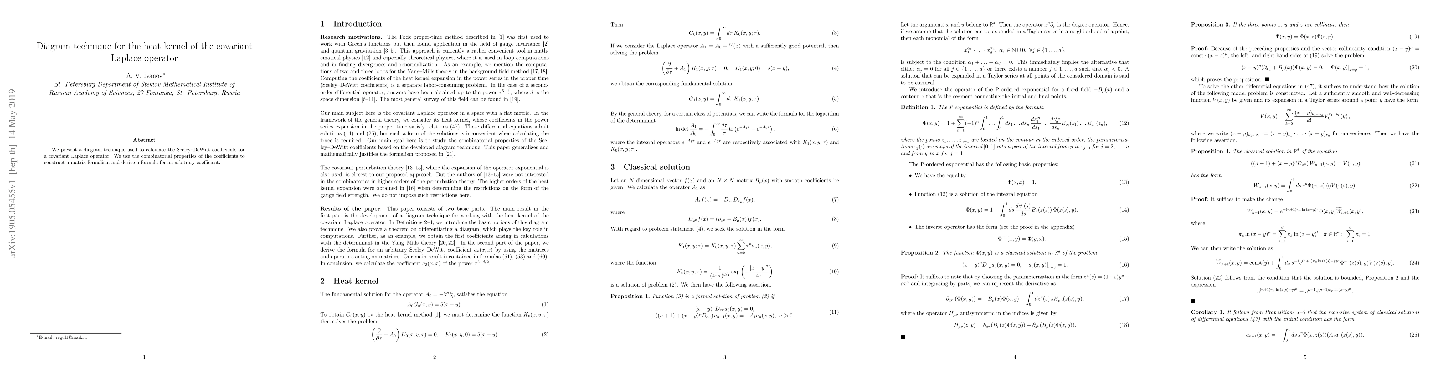 This paper introduces a diagram technique to compute Seeley-DeWitt coefficients for a covariant Laplace operator, leveraging combinatorial properties to develop a matrix formalism and derive a formula for any coefficient.