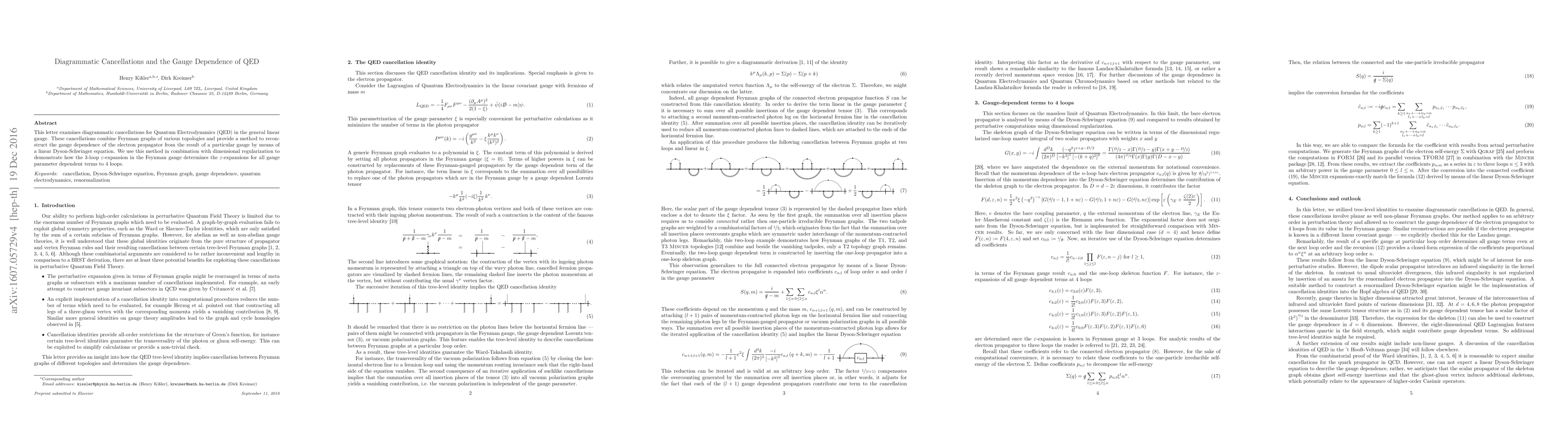 This paper investigates diagrammatic cancellations in QED within the general linear gauge, revealing how these cancellations can reconstruct gauge dependence of the electron propagator via a linear Dyson-Schwinger equation. It demonstrates that the 3-loop ${\epsilon}$-expansion in the Feynman gauge determines the ${\epsilon}$-expansions for all gauge-dependent terms up to 4 loops using dimensional regularization.