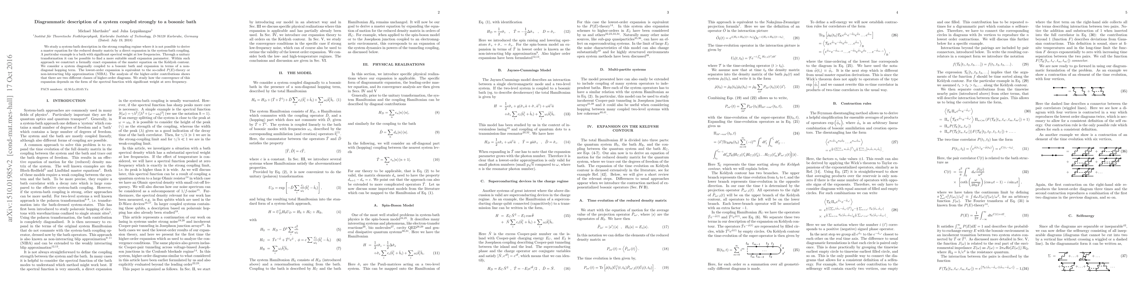 We study a system-bath description in the strong coupling regime where it is not possible to derive a master equation for the reduced density matrix by a direct expansion in the system-bath coupling. A particular example is a bath with significant spectral weight at low frequencies. Through a unitary transformation it can be possible to find a more suitable small expansion parameter. Within such approach we construct a formally exact expansion of the master equation on the Keldysh contour. We consider a system diagonally coupled to a bosonic bath and expansion in terms of a non-diagonal hopping term. The lowest-order expansion is equivalent to the so-called $P(E)$-theory or non-interacting blip approximation (NIBA). The analysis of the higher-order contributions shows that there are two different classes of higher-order diagrams. We study how the convergence of this expansion depends on the form of the spectral function with significant weight at zero frequency.