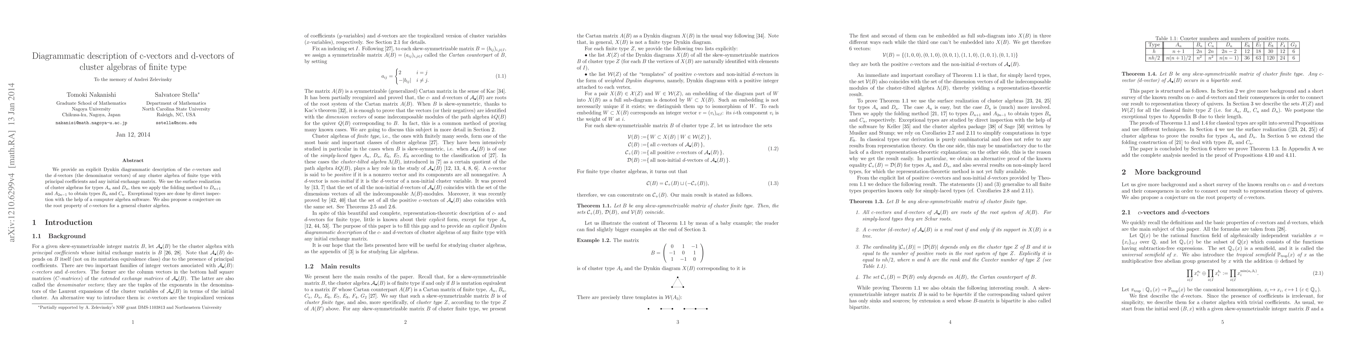 This paper presents a diagrammatic method to explicitly describe c-vectors and d-vectors in cluster algebras of finite type using Dynkin diagrams, extending the approach to types B_n and C_n through folding and confirming exceptional types via computer algebra. A conjecture on the root properties of c-vectors is also proposed.