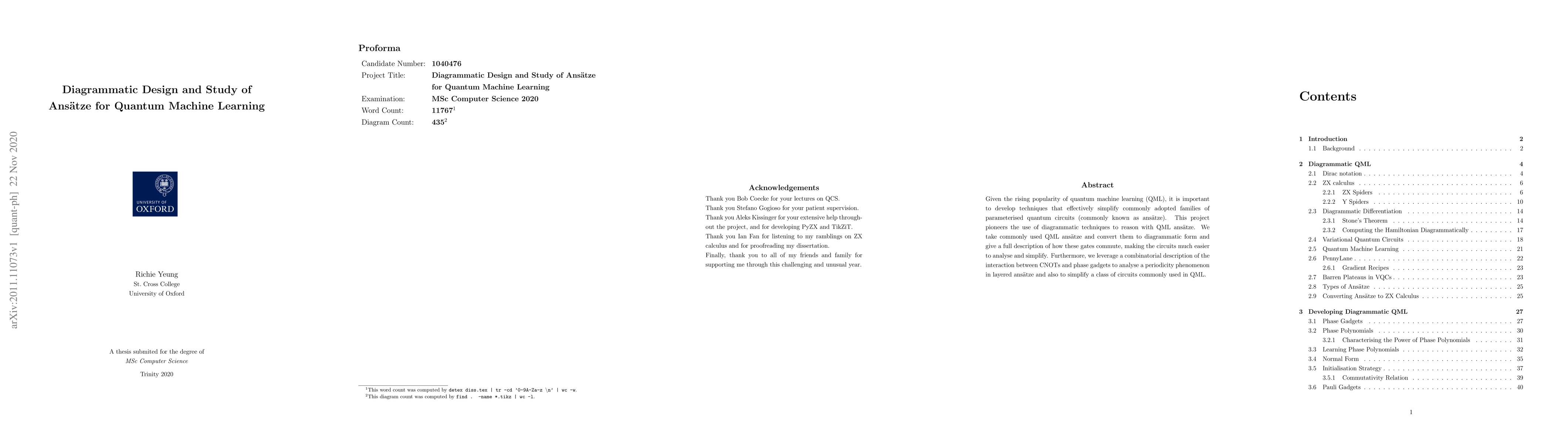 This paper introduces diagrammatic techniques to simplify and analyze quantum machine learning ansätze, converting them into diagrammatic forms to better understand gate interactions and periodicity phenomena, thereby aiding in circuit simplification.