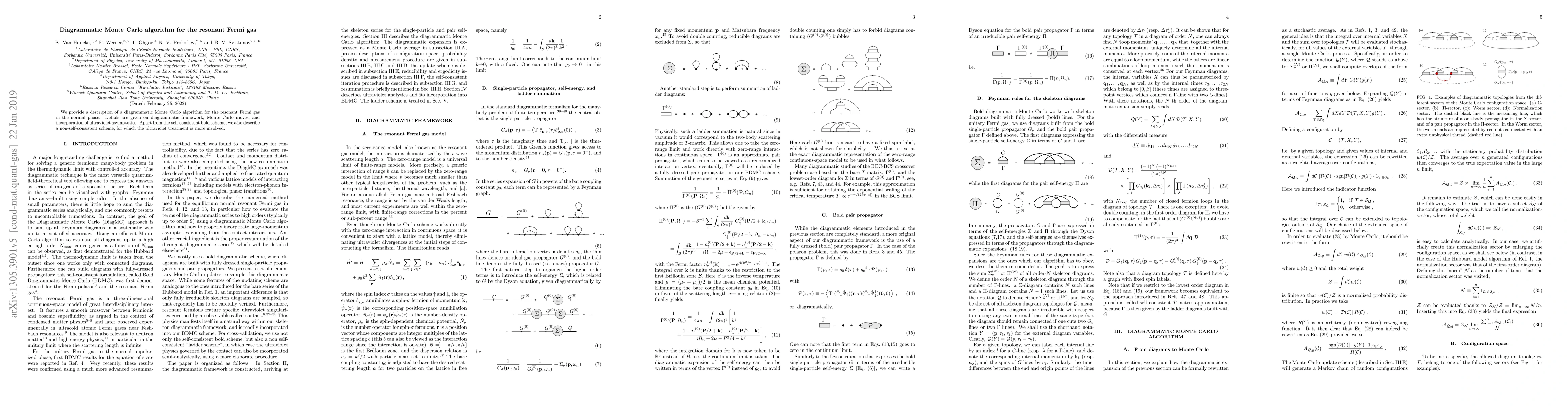 This paper presents a diagrammatic Monte Carlo algorithm for studying the resonant Fermi gas in its normal phase, detailing both self-consistent and non-self-consistent schemes, with a focus on diagrammatic framework, Monte Carlo moves, and ultraviolet asymptotics treatment.