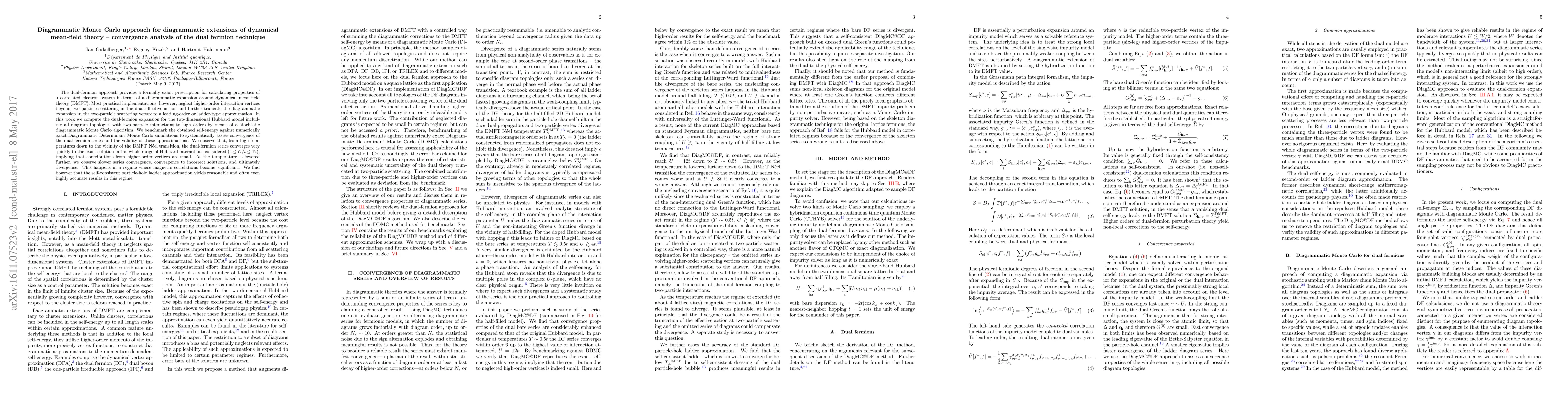 This paper employs a stochastic diagrammatic Monte Carlo approach to compute the dual-fermion expansion for the two-dimensional Hubbard model, revealing rapid convergence of the series to exact solutions at high temperatures and near the DMFT Néel transition. However, convergence slows down and diverges at lower temperatures, indicating significant magnetic correlations, though the self-consistent particle-hole ladder approximation remains accurate.