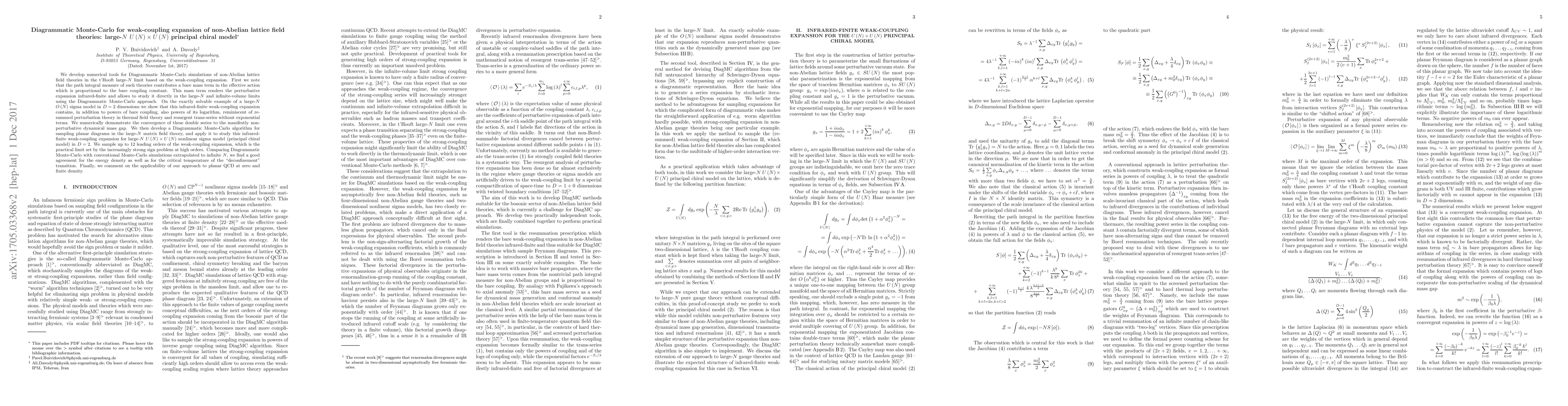We develop numerical tools for Diagrammatic Monte-Carlo simulations of non-Abelian lattice field theories in the t'Hooft large-N limit based on the weak-coupling expansion. First we note that the path integral measure of such theories contributes a bare mass term in the effective action which is proportional to the bare coupling constant. This mass term renders the perturbative expansion infrared-finite and allows to study it directly in the large-N and infinite-volume limits using the Diagrammatic Monte-Carlo approach. On the exactly solvable example of a large-N O(N) sigma model in D=2 dimensions we show that this infrared-finite weak-coupling expansion contains, in addition to powers of bare coupling, also powers of its logarithm, reminiscent of re-summed perturbation theory in thermal field theory and resurgent trans-series without exponential terms. We numerically demonstrate the convergence of these double series to the manifestly non-perturbative dynamical mass gap. We then develop a Diagrammatic Monte-Carlo algorithm for sampling planar diagrams in the large-N matrix field theory, and apply it to study this infrared-finite weak-coupling expansion for large-N U(N)xU(N) nonlinear sigma model (principal chiral model) in D=2. We sample up to 12 leading orders of the weak-coupling expansion, which is the practical limit set by the increasingly strong sign problem at high orders. Comparing Diagrammatic Monte-Carlo with conventional Monte-Carlo simulations extrapolated to infinite N, we find a good agreement for the energy density as well as for the critical temperature of the "deconfinement" transition. Finally, we comment on the applicability of our approach to planar QCD at zero and finite density.