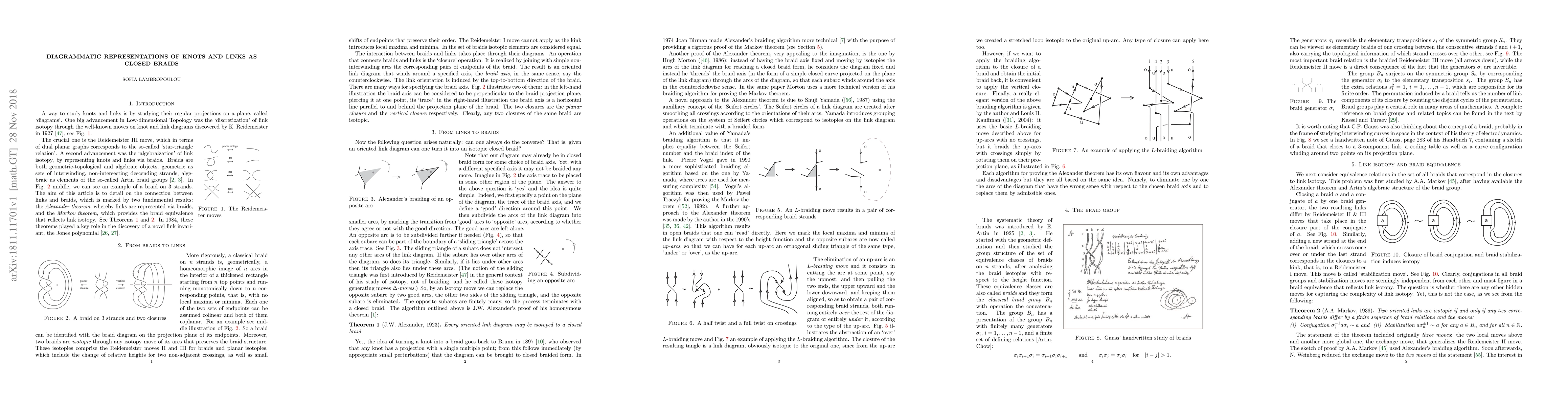 Summary: This expository article explores how knots and links can be represented diagrammatically through closed braids, providing a comprehensive overview of the underlying techniques and applications.