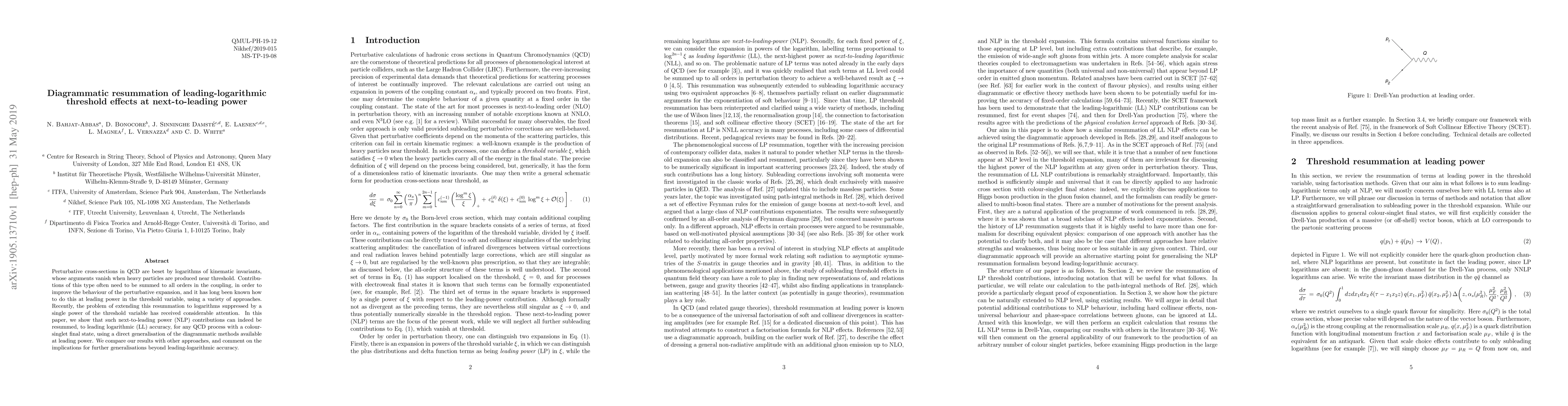 Perturbative cross-sections in QCD are beset by logarithms of kinematic invariants, whose arguments vanish when heavy particles are produced near threshold. Contributions of this type often need to be summed to all orders in the coupling, in order to improve the behaviour of the perturbative expansion, and it has long been known how to do this at leading power in the threshold variable, using a variety of approaches. Recently, the problem of extending this resummation to logarithms suppressed by a single power of the threshold variable has received considerable attention. In this paper, we show that such next-to-leading power (NLP) contributions can indeed be resummed, to leading logarithmic (LL) accuracy, for any QCD process with a colour-singlet final state, using a direct generalisation of the diagrammatic methods available at leading power. We compare our results with other approaches, and comment on the implications for further generalisations beyond leading-logarithmic accuracy.