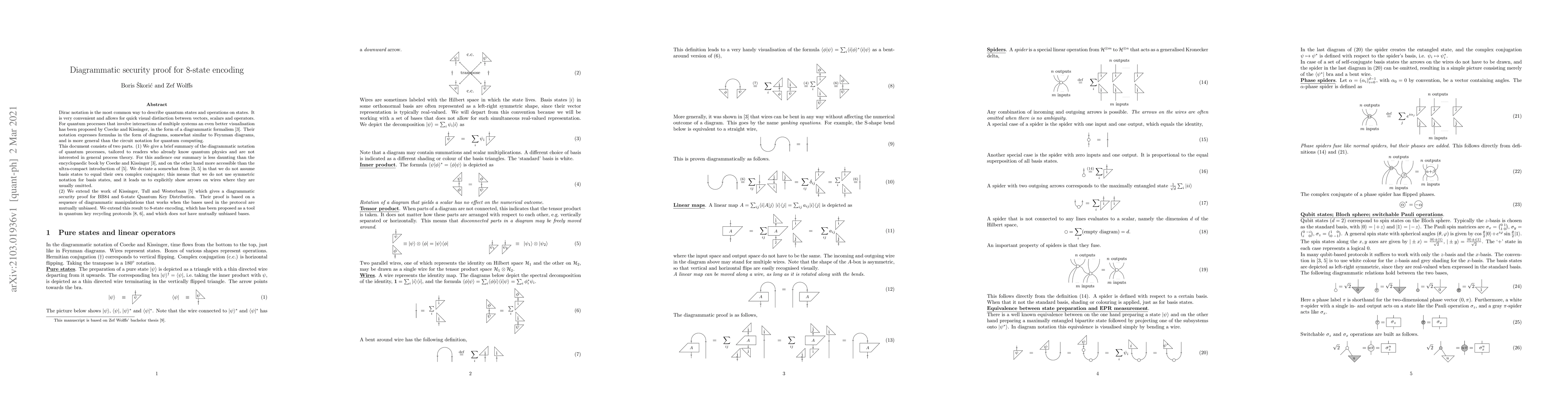 Researchers develop a diagrammatic security proof for 8-state encoding in quantum key distribution, extending previous work on 6-state protocols to a more secure system.