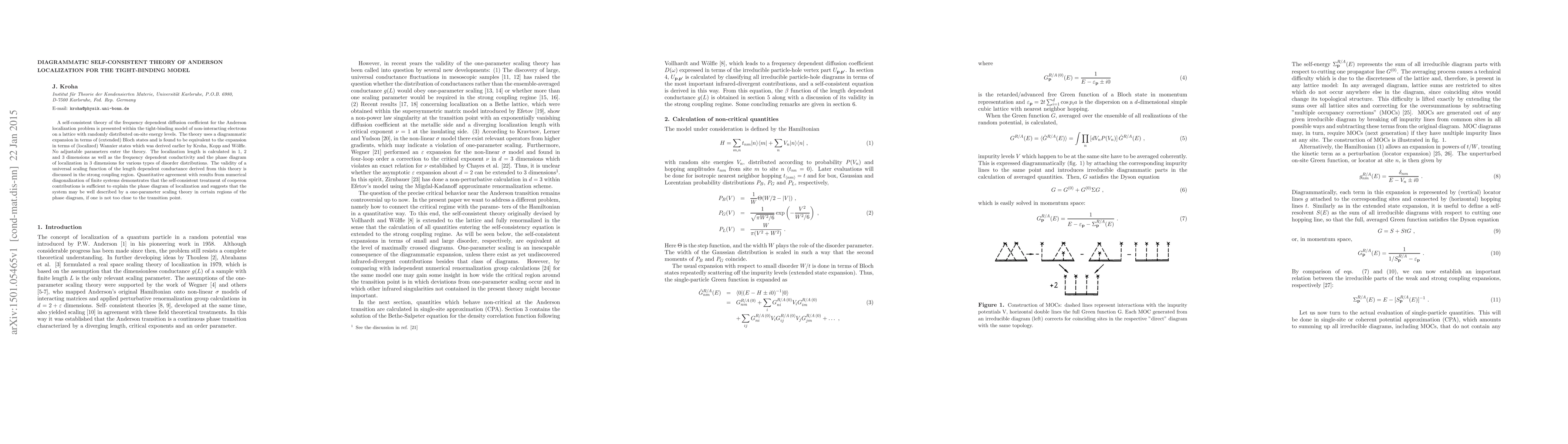 This paper presents a self-consistent theory for Anderson localization in the tight-binding model using diagrammatic expansions, showing equivalence to earlier Wannier state expansions. It provides a universal scaling function for conductance and demonstrates agreement with numerical results, suggesting a one-parameter scaling theory for certain regions of the localization phase diagram.