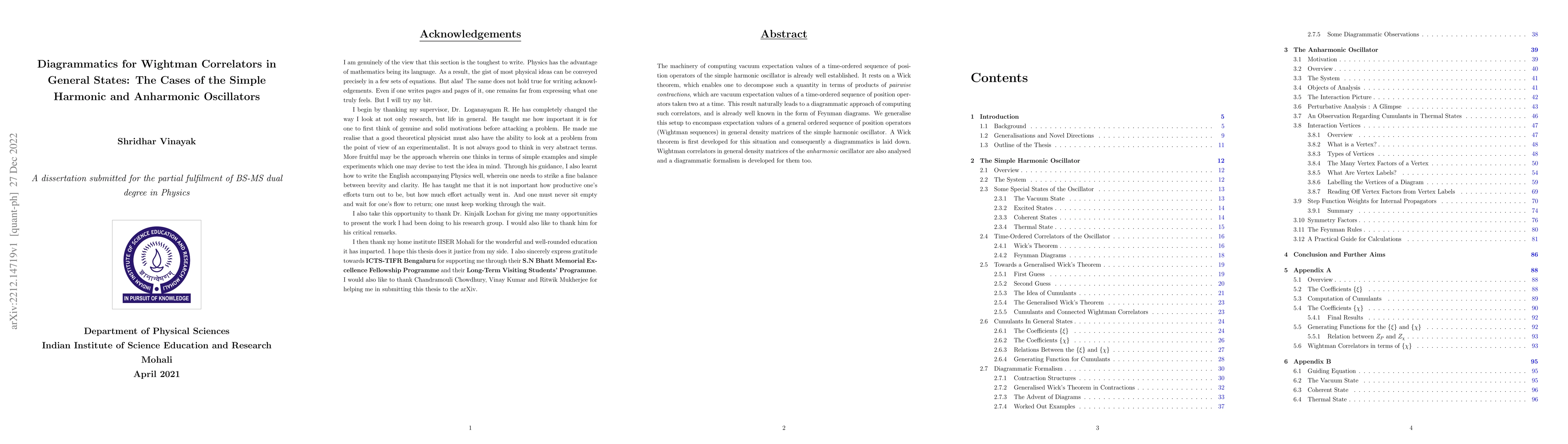 The machinery of computing vacuum expectation values of a time-ordered sequence of position operators of the simple harmonic oscillator is already well established. It rests on a Wick theorem, which enables one to decompose such a quantity in terms of products of \emph{pairwise contractions}, which are vacuum expectation values of a time-ordered sequence of position operators taken two at a time. This result naturally leads to a diagrammatic approach of computing such correlators, and is already well known in the form of Feynman diagrams. We generalise this setup to encompass expectation values of a general ordered sequence of position operators (Wightman sequences) in general density matrices of the simple harmonic oscillator. A Wick theorem is first developed for this situation and consequently a diagrammatics is laid down. Wightman correlators in general density matrices of the \emph{anharmonic} oscillator are also analysed and a diagrammatic formalism is developed for them too.