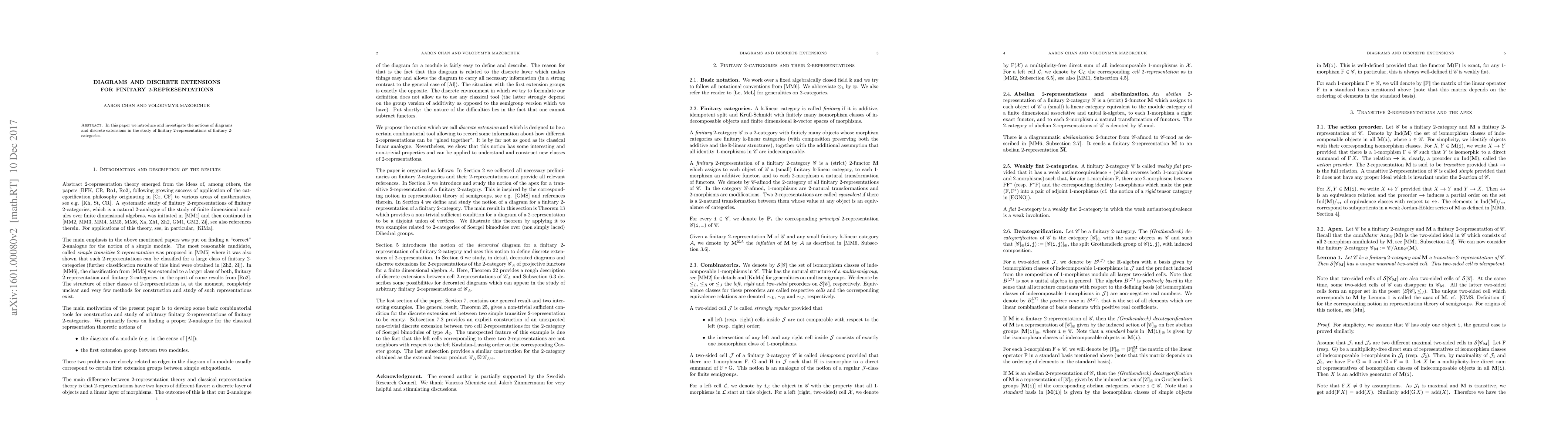 In this paper we introduce and investigate the notions of diagrams and discrete extensions in the study of finitary $2$-representations of finitary $2$-categories.