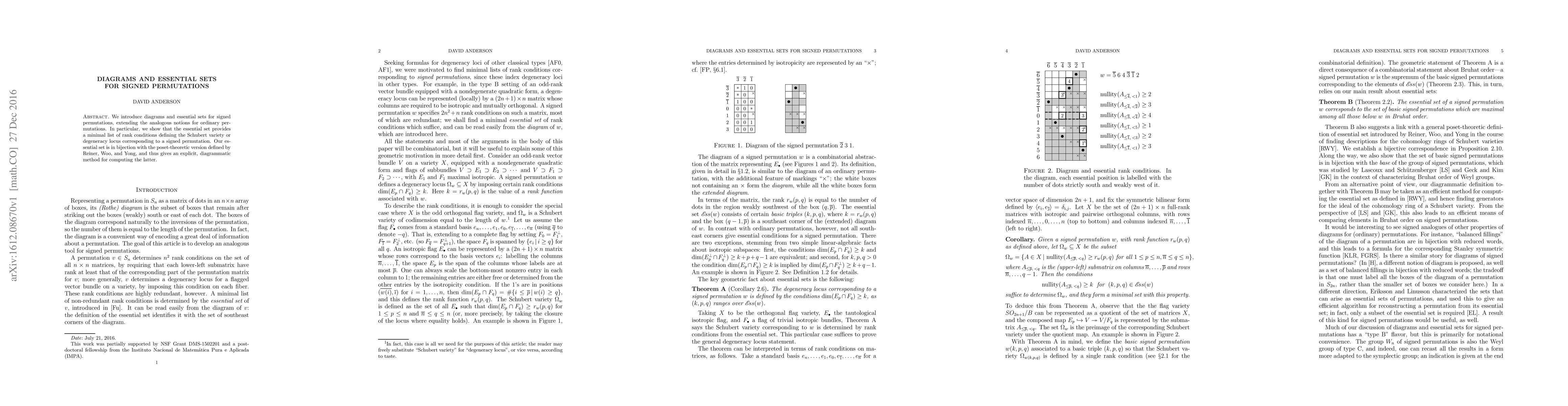 We introduce diagrams and essential sets for signed permutations, extending the analogous notions for ordinary permutations. In particular, we show that the essential set provides a minimal list of rank conditions defining the Schubert variety or degeneracy locus corresponding to a signed permutation. Our essential set is in bijection with the poset-theoretic version defined by Reiner, Woo, and Yong, and thus gives an explicit, diagrammatic method for computing the latter.