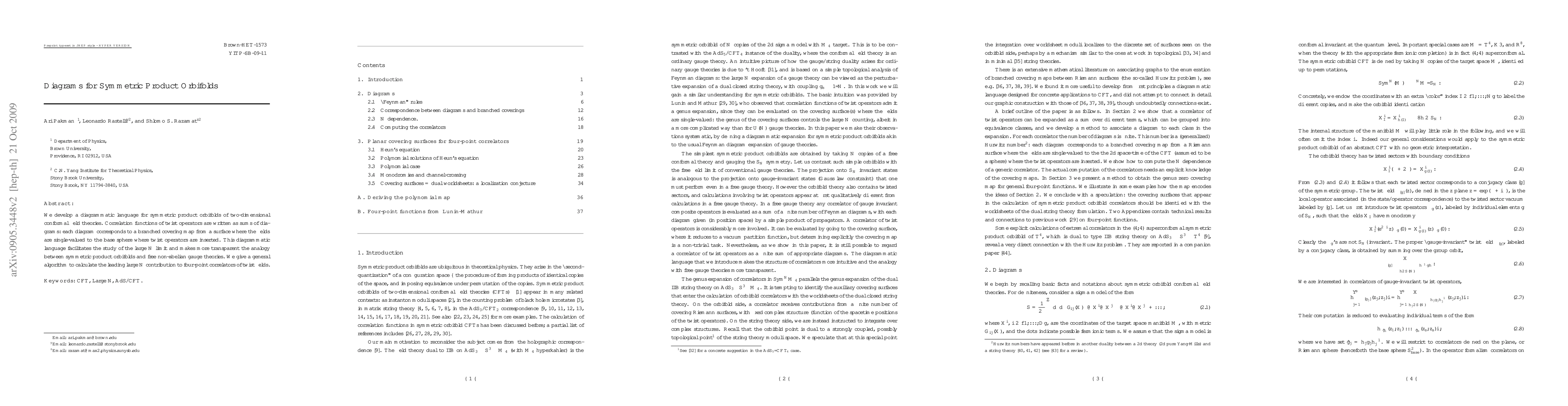 We develop a diagrammatic language for symmetric product orbifolds of two-dimensional conformal field theories. Correlation functions of twist operators are written as sums of diagrams: each diagram corresponds to a branched covering map from a surface where the fields are single-valued to the base sphere where twist operators are inserted. This diagrammatic language facilitates the study of the large N limit and makes more transparent the analogy between symmetric product orbifolds and free non-abelian gauge theories. We give a general algorithm to calculate the leading large N contribution to four-point correlators of twist fields.