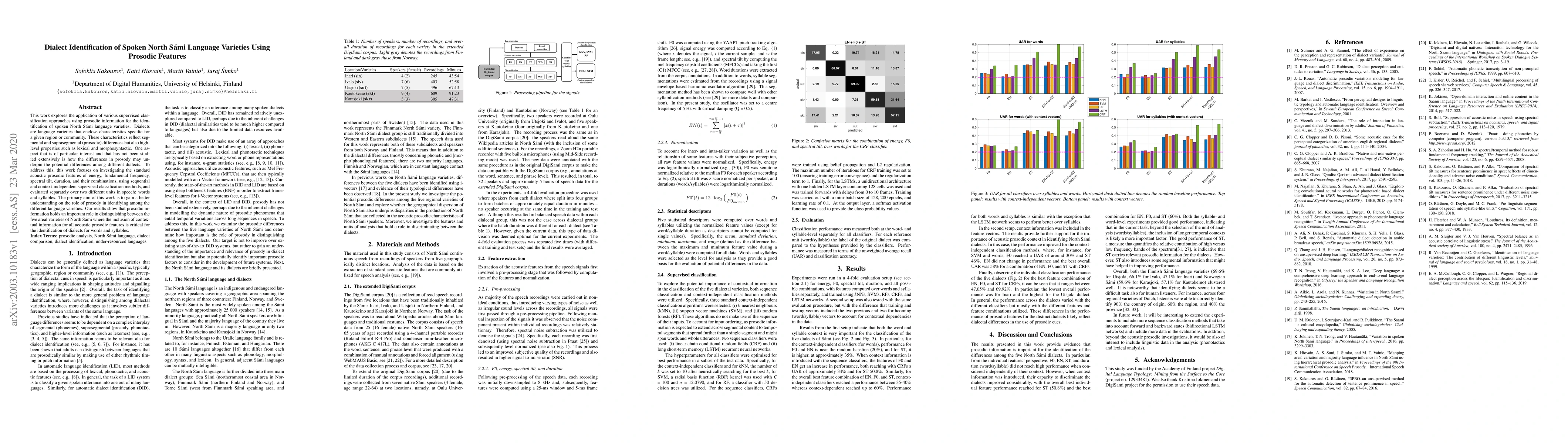 This work explores the application of various supervised classification approaches using prosodic information for the identification of spoken North S\'ami language varieties. Dialects are language varieties that enclose characteristics specific for a given region or community. These characteristics reflect segmental and suprasegmental (prosodic) differences but also high-level properties such as lexical and morphosyntactic. One aspect that is of particular interest and that has not been studied extensively is how the differences in prosody may underpin the potential differences among different dialects. To address this, this work focuses on investigating the standard acoustic prosodic features of energy, fundamental frequency, spectral tilt, duration, and their combinations, using sequential and context-independent supervised classification methods, and evaluated separately over two different units in speech: words and syllables. The primary aim of this work is to gain a better understanding on the role of prosody in identifying among the different language varieties. Our results show that prosodic information holds an important role in distinguishing between the five areal varieties of North S\'ami where the inclusion of contextual information for all acoustic prosodic features is critical for the identification of dialects for words and syllables.