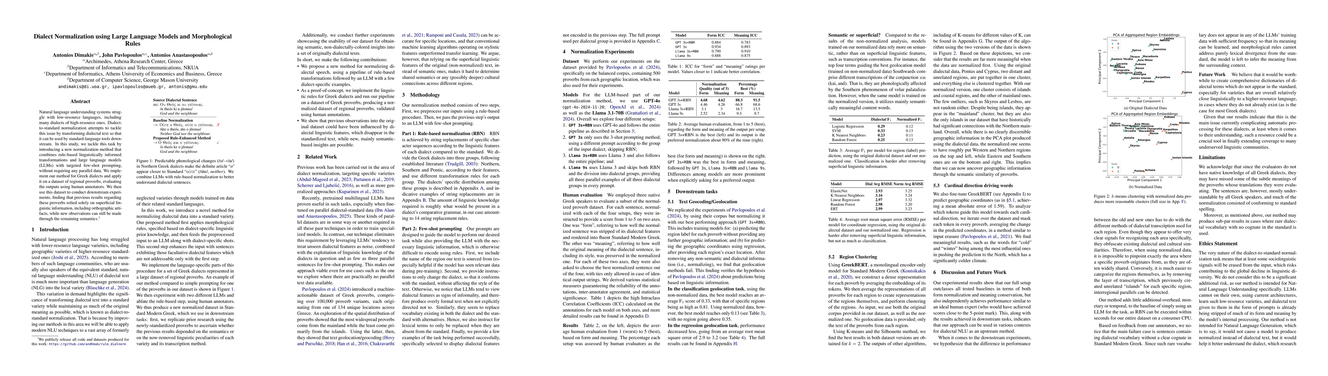 Researchers developed a new method to normalize dialects of languages into standard forms using large language models and rule-based transformations, with promising results in evaluating regional proverbs.