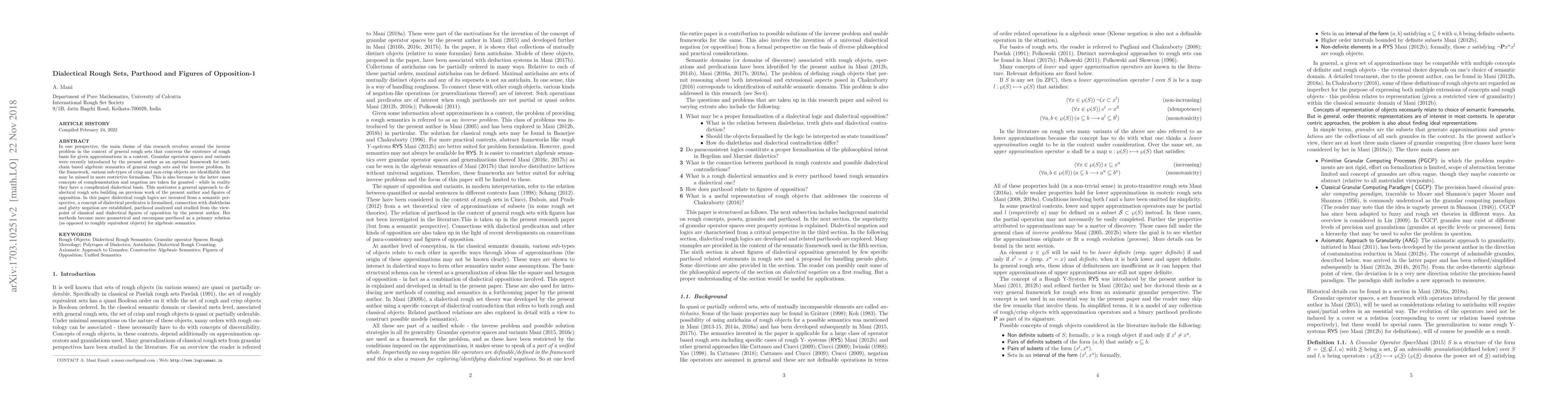 The research introduces dialectical rough sets, parthood, and figures of opposition, utilizing granular operator spaces and anti-chain based algebraic semantics to address the inverse problem in general rough sets.