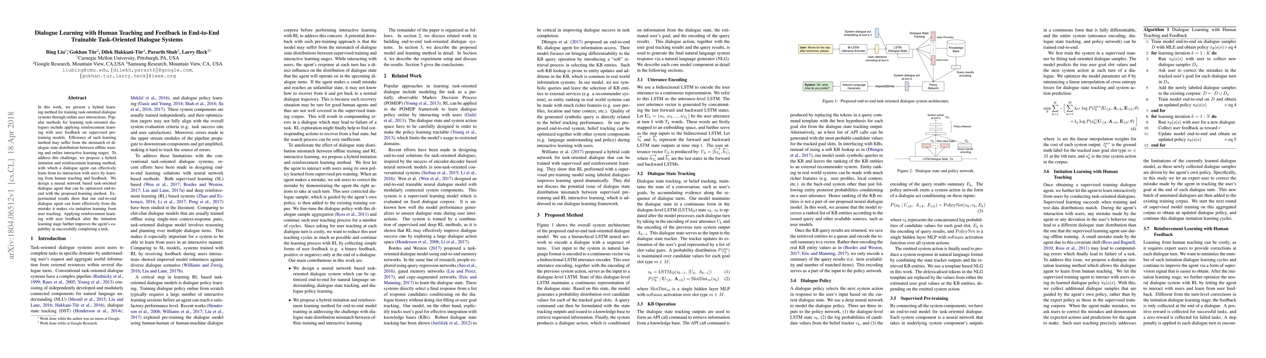 This paper proposes a hybrid learning method combining imitation and reinforcement learning to train task-oriented dialogue systems via human feedback. The method optimizes a neural network-based agent end-to-end, improving its performance through learning from user corrections and feedback, thereby effectively addressing the distribution mismatch issue in dialogue state learning.
