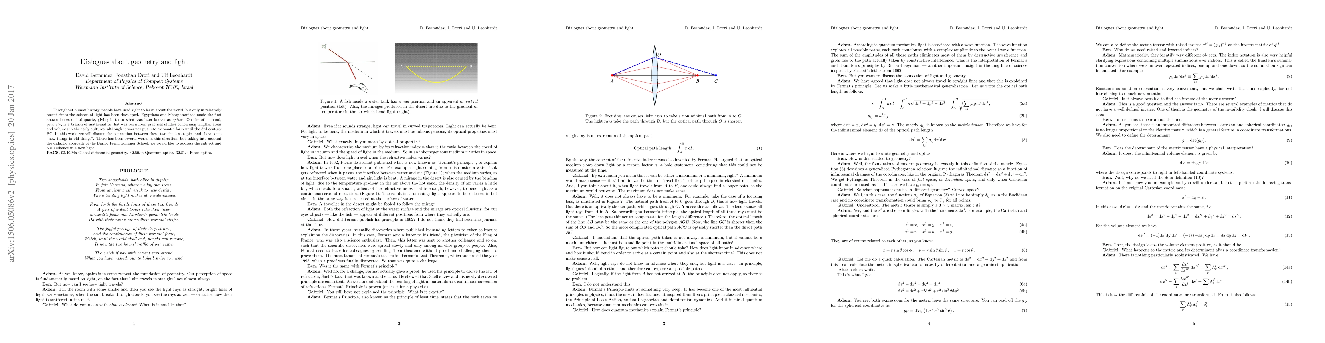 Throughout human history, people have used sight to learn about the world, but only in relatively recent times the science of light has been developed. Egyptians and Mesopotamians made the first known lenses out of quartz, giving birth to what was later known as optics. On the other hand, geometry is a branch of mathematics that was born from practical studies concerning lengths, areas and volumes in the early cultures, although it was not put into axiomatic form until the 3rd century BC. In this work, we will discuss the connection between these two timeless topics and show some "new things in old things". There has been several works in this direction, but taking into account the didactic approach of the Enrico Fermi Summer School, we would like to address the subject and our audience in a new light.