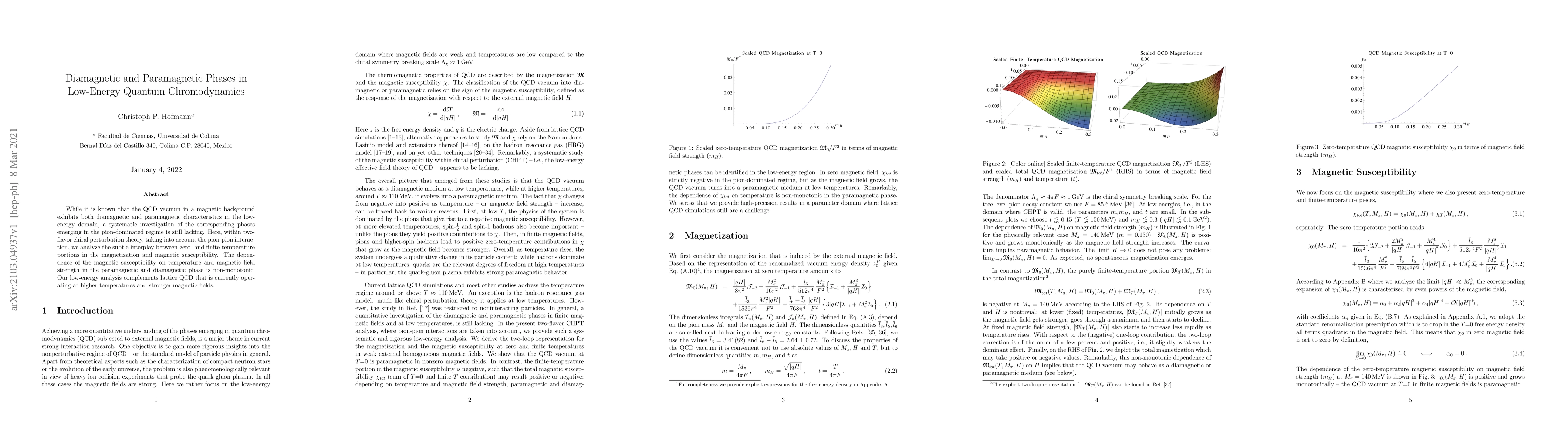 This paper investigates the behavior of magnetization and magnetic susceptibility in low-energy quantum chromodynamics, revealing non-monotonic dependence on temperature and magnetic field strength in paramagnetic and diamagnetic phases.