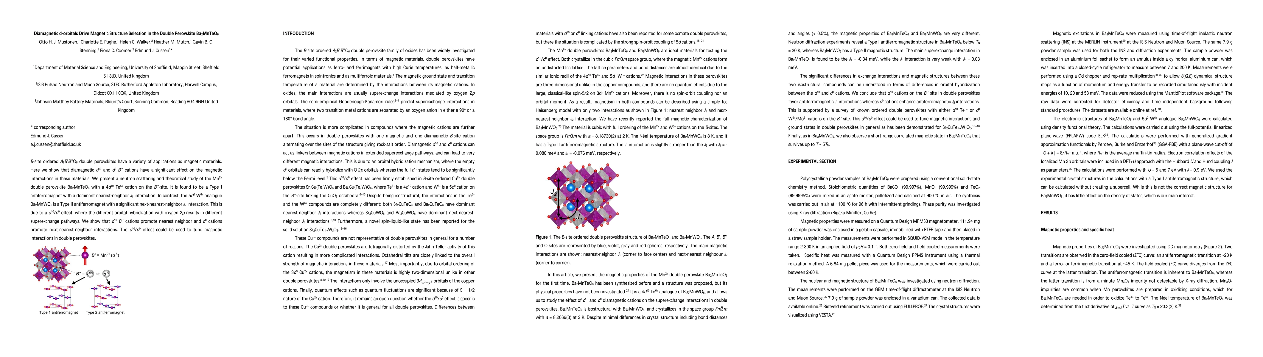 This study reveals that diamagnetic $d^{10}$ and $d^0$ B'' cations in double perovskites significantly influence magnetic interactions, leading Ba$_2$MnTeO$_6$ to exhibit Type I antiferromagnetism and Ba$_2$MnWO$_6$ to show Type II antiferromagnetism due to different superexchange pathways influenced by the B''-site cation's electronic configuration.