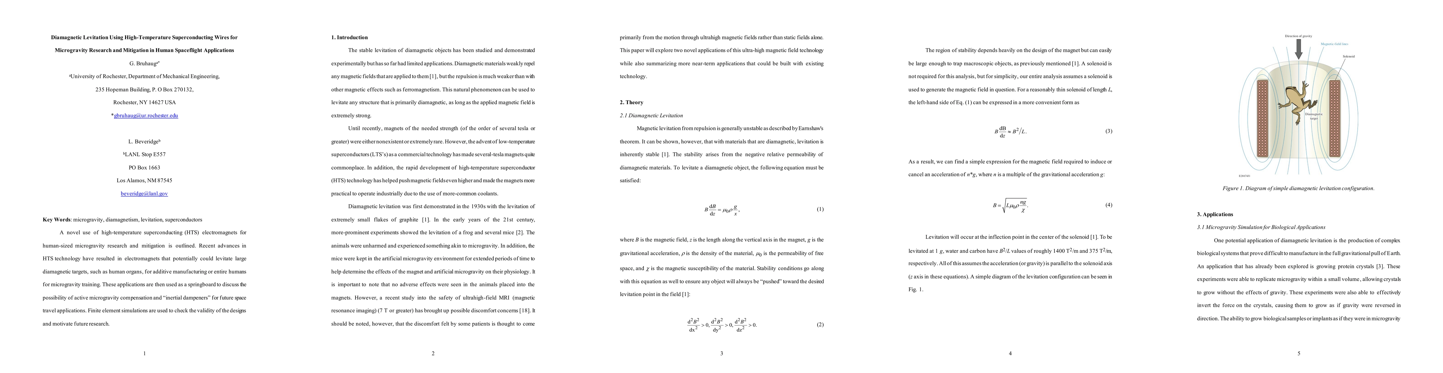 A novel use of high temperature superconducting (HTS) electromagnets for human sized microgravity research and mitigation is outlined. Recent advances in HTS technology have resulted in electromagnets that potentially could levitate large diamagnetic targets, such as human organs, for additive manufacturing or entire humans for microgravity training. These applications are then used as a springboard to discuss the possibility of active microgravity compensation and inertial dampeners for future space travel applications. Finite element simulations are used to check the validity of the designs and motivate future research.