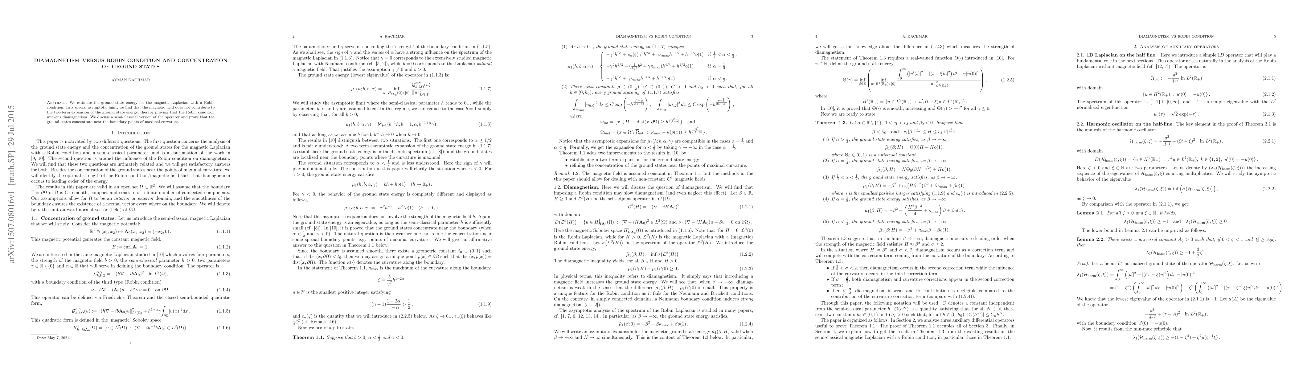 This paper estimates the ground state energy for the magnetic Laplacian with a Robin boundary condition, demonstrating that the Robin condition weakens diamagnetism by showing the magnetic field's negligible effect in the asymptotic limit. It also proves that ground states concentrate near boundary points of maximal curvature in a semi-classical operator version.