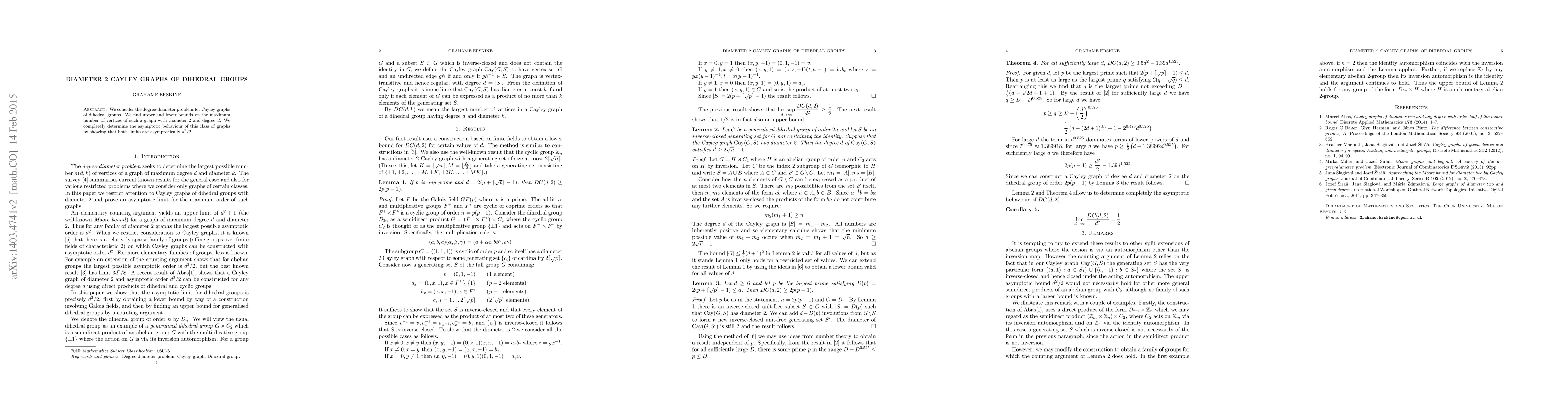 This paper investigates the degree-diameter problem for Cayley graphs of dihedral groups, establishing upper and lower bounds for the number of vertices in such graphs with diameter 2 and degree $d$. It concludes that both bounds asymptotically approach $d^2/2$.