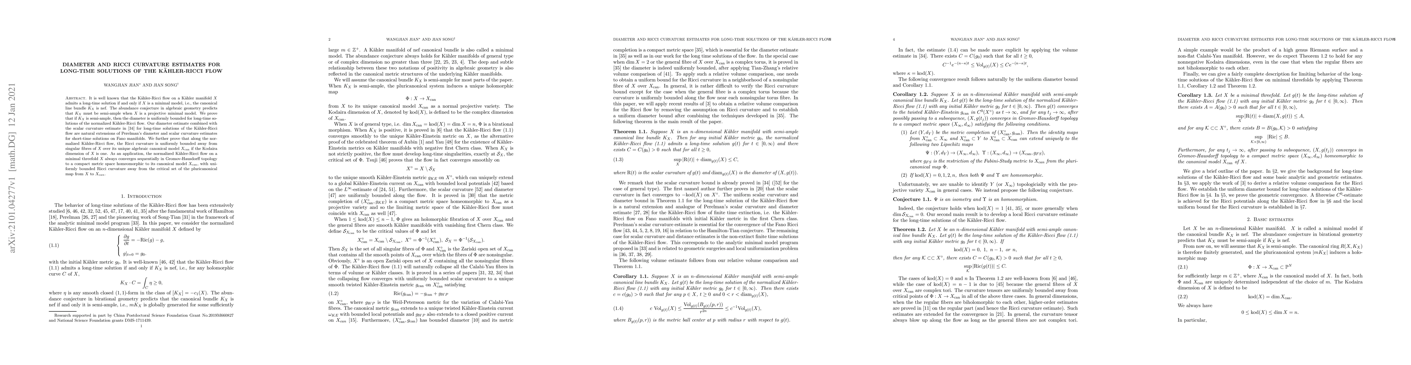 It is well known that the K\"ahler-Ricci flow on a K\"ahler manifold $X$ admits a long-time solution if and only if $X$ is a minimal model, i.e., the canonical line bundle $K_X$ is nef. The abundance conjecture in algebraic geometry predicts that $K_X$ must be semi-ample when $X$ is a projective minimal model. We prove that if $K_X$ is semi-ample, then the diameter is uniformly bounded for long-time solutions of the normalized K\"ahler-Ricci flow. Our diameter estimate combined with the scalar curvature estimate in [34] for long-time solutions of the K\"ahler-Ricci flow are natural extensions of Perelman's diameter and scalar curvature estimates for short-time solutions on Fano manifolds. We further prove that along the normalized K\"ahler-Ricci flow, the Ricci curvature is uniformly bounded away from singular fibres of $X$ over its unique algebraic canonical model $X_{can}$ if the Kodaira dimension of $X$ is one. As an application, the normalized K\"ahler-Ricci flow on a minimal threefold $X$ always converges sequentially in Gromov-Hausdorff topology to a compact metric space homeomorphic to its canonical model $X_{can}$, with uniformly bounded Ricci curvature away from the critical set of the pluricanonical map from $X$ to $X_{can}$.