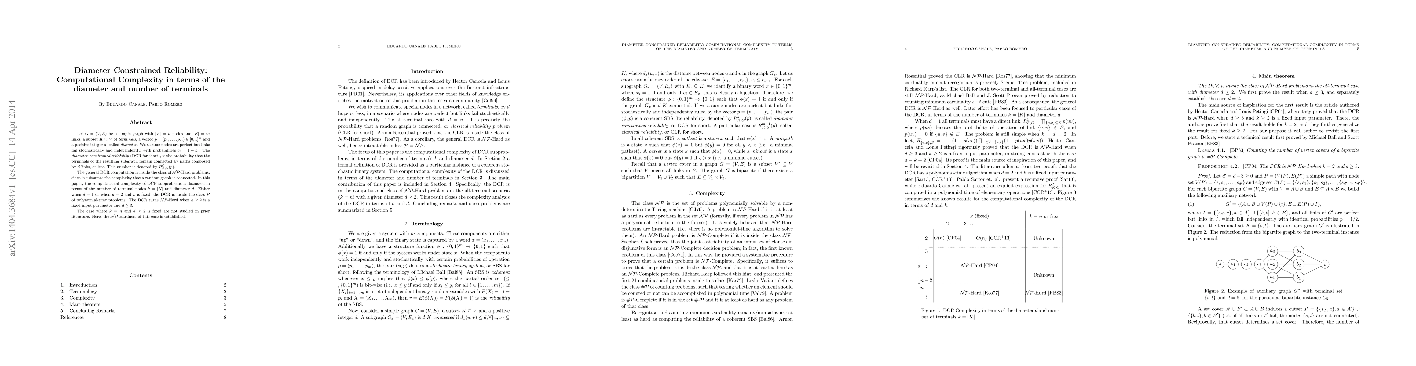 This research paper explores the complexity of computing the probability that terminals in a graph remain connected within a certain number of links, with varying constraints on the diameter.
