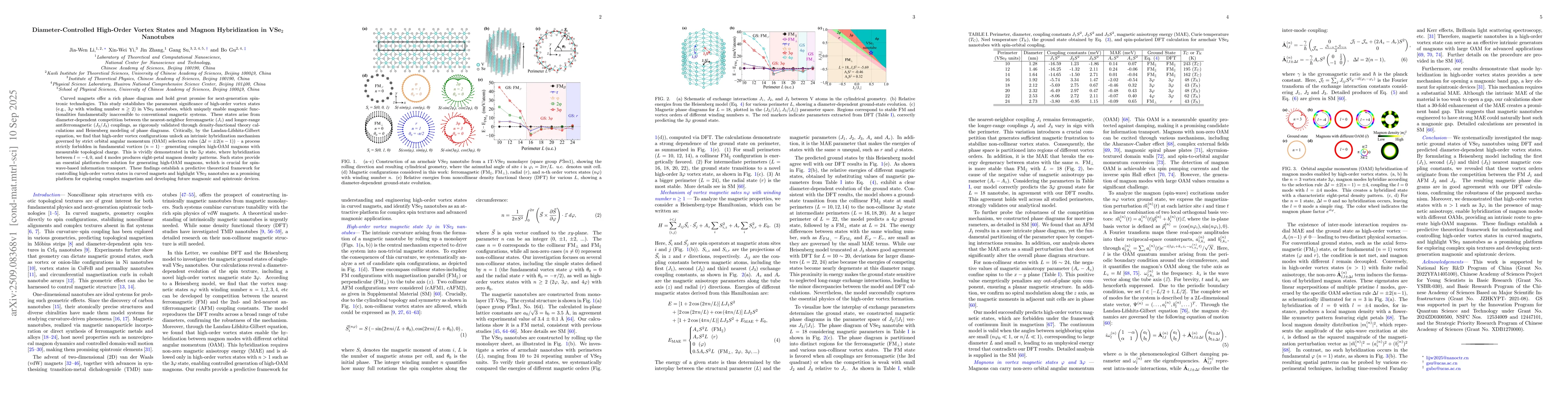 Curved magnets offer a rich phase diagram and hold great promise for next-generation spintronic technologies. This study establishes the paramount significance of high-order vortex states (e.g., 3$\varphi$ with winding number $n$ > 1) in VSe2 nanotubes, which uniquely enable magnonic functionalities fundamentally inaccessible to conventional magnetic systems. These states arise from diameter-dependent competition between the nearest-neighbor ferromagnetic ($J_1$) and longer-range antiferromagnetic ($J_2$/$J_3$) couplings, as rigorously validated through density-functional theory calculations and Heisenberg modeling of phase diagrams. Critically, by the Landau-Lifshitz-Gilbert equation, we find that high-order vortex configurations unlock an intrinsic hybridization mechanism governed by strict orbital angular momentum (OAM) selection rules ($\Delta l = \pm 2(n-1)$) -- a process strictly forbidden in fundamental vortices ($n$ = 1) -- generating complex high-OAM magnons with measurable topological charge. This is vividly demonstrated in the 3$\varphi$ state, where hybridization between $l$ = -4, 0 and 4 modes produces eight-petal magnon density patterns. Such states provide an essential platform-free solution for generating high-OAM magnons, wchich is crucial for spin-wave-based information transport. These findings establish a predictive theoretical framework for controlling high-order vortex states in curved magnets and highlight VSe2 nanotubes as a promising platform for exploring complex magnetism and developing future magnonic and spintronic devices.