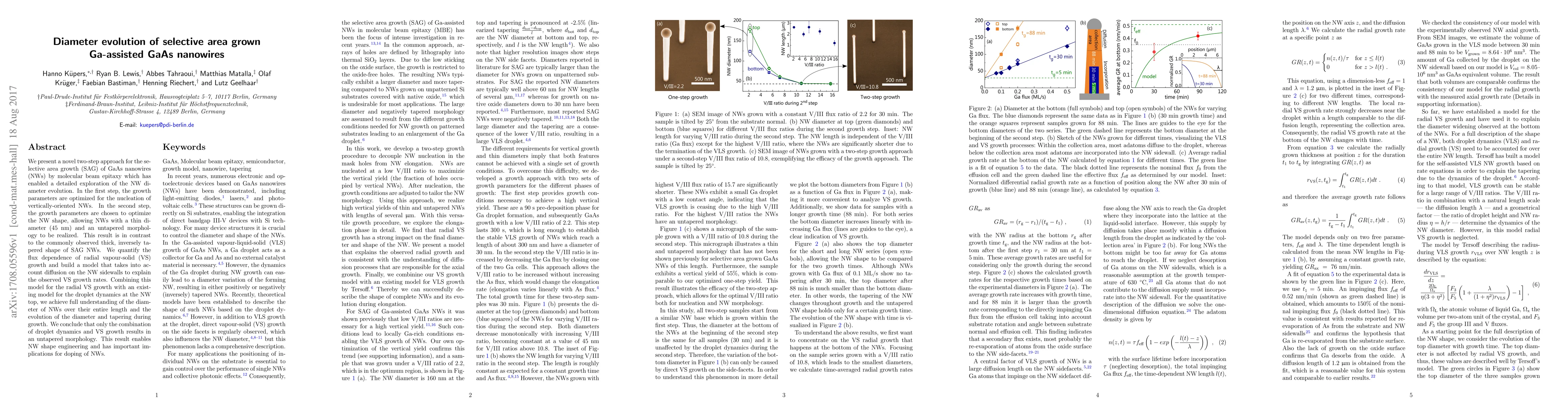 The paper introduces a two-step method for growing GaAs nanowires with a thin, untapered diameter using molecular beam epitaxy. By optimizing growth parameters and modeling radial vapor-solid growth with sidewall diffusion, the researchers explain the NW diameter evolution, paving the way for nanowire shape engineering and doping control.